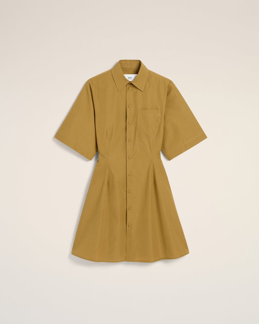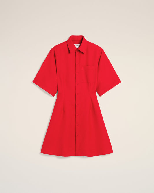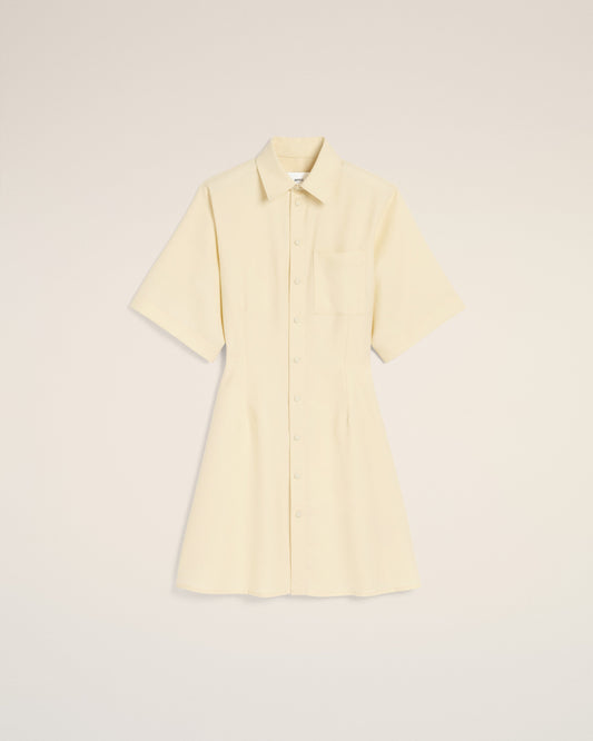 Short sleeve shirt dress in fluid wool canvas. Fitted fit 89 cm center back length...