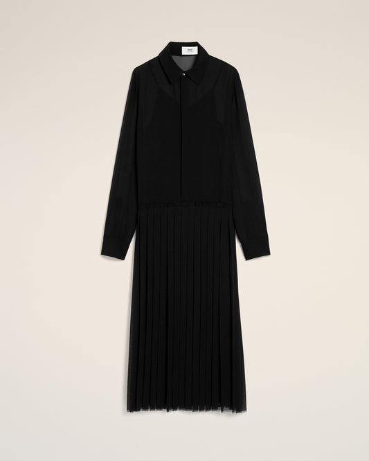 Shirt dress in polyester crepe. Middle back length 130 cm (size 36) Classic collar Hidden...