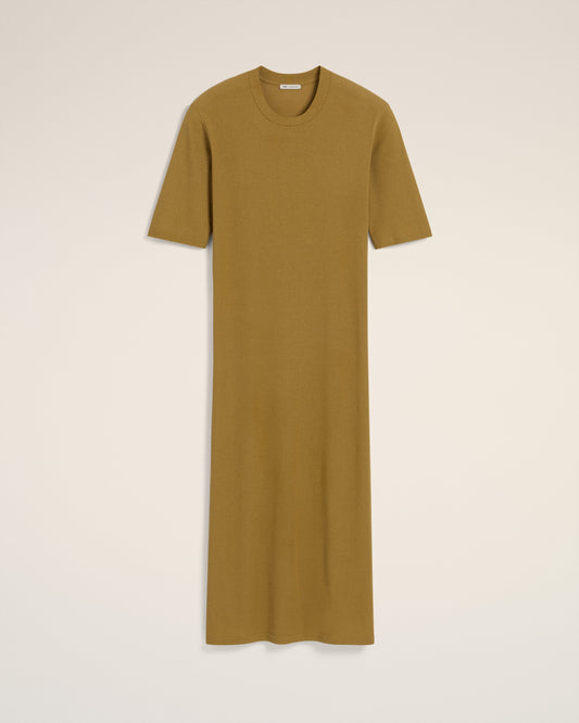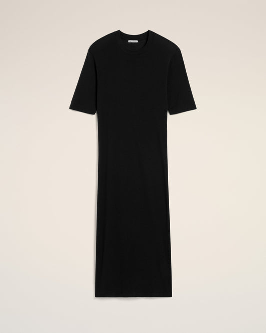 T-shirt dress in light shiny rib jersey. 155 cm center back length (size S) Gold engraved...