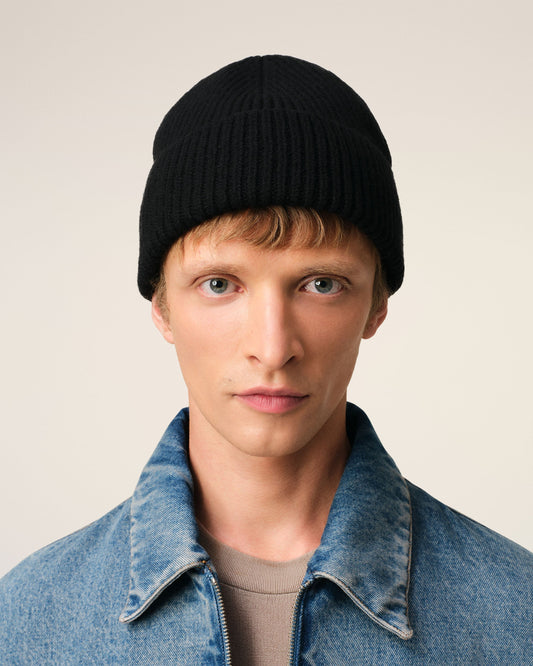 Black Merino Wool Ami De Coeur Beanie