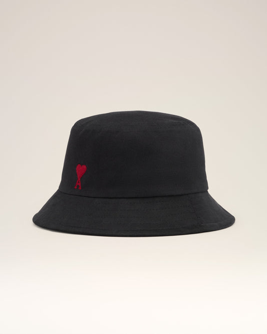 Black Cotton Ami de Coeur Embroidery Bucket Hat