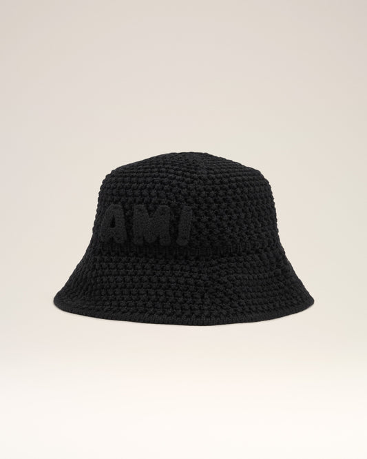 Black Knit Ami Patch Bucket Hat