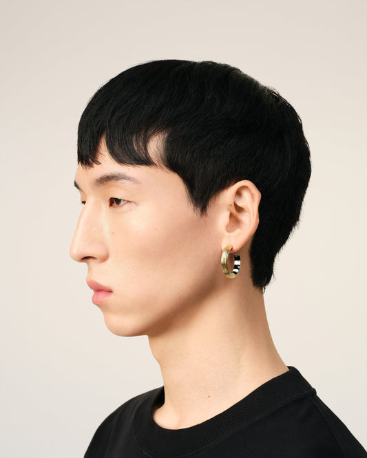 Earrings in gold-plated brass. Stripes inside in black and white enamel Engraved ami logo Sold...