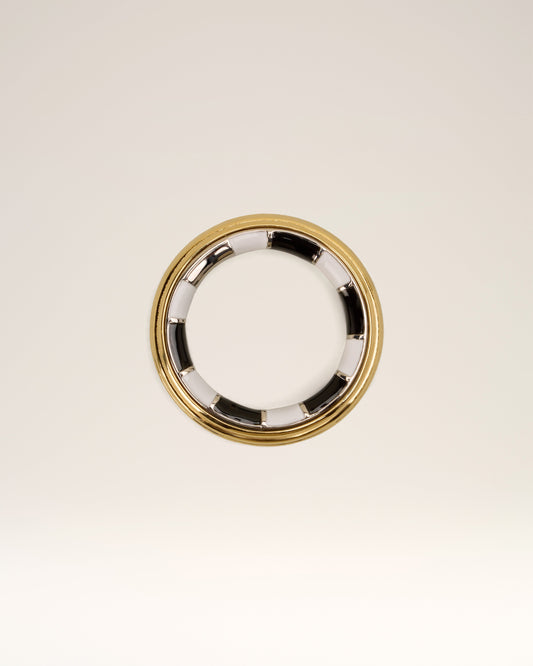 Ring in gold-plated brass. Stripes inside in black and white enamel Engraved ami logo Made...