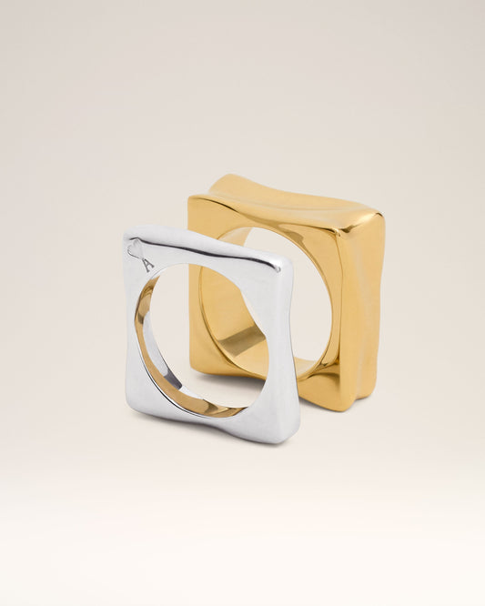 Hammered double ring in gold and palladium-plated brass. Ami de Coeur logo engraved on the...