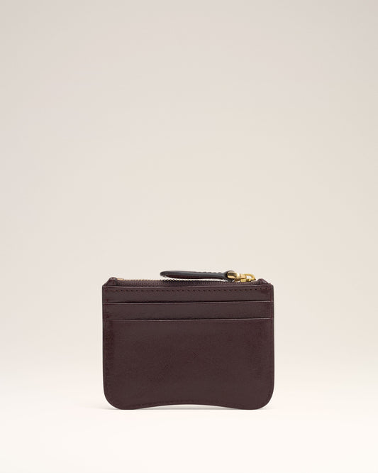 Paris Paris zipped card holder in vegetable-tanned shiny textured leather. Natural patina of the...