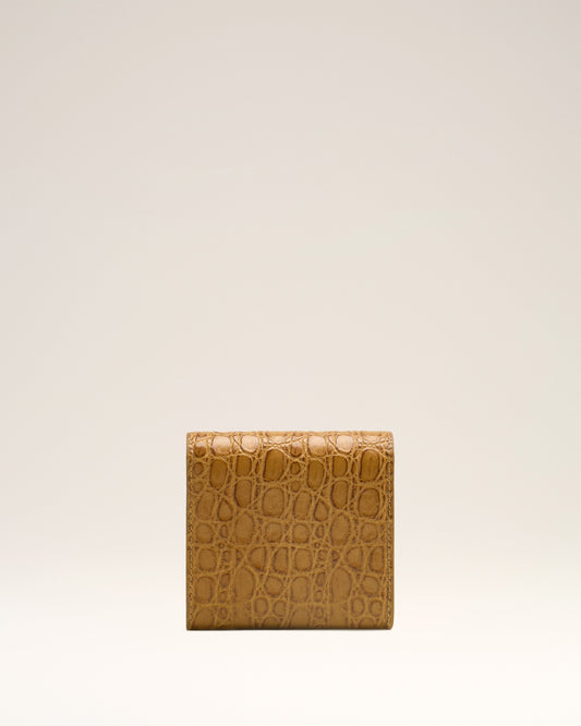 Paris Paris compact wallet in caiman embossed leather. Cotton canvas lining Ami de Coeur stud ...