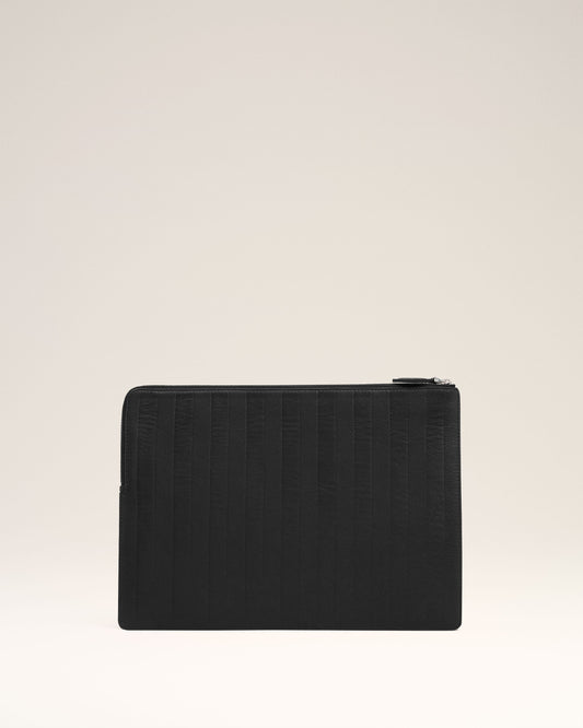 Midi document holder in smooth leather. Cotton canvas lining Signature stripes One main compartment Metal...