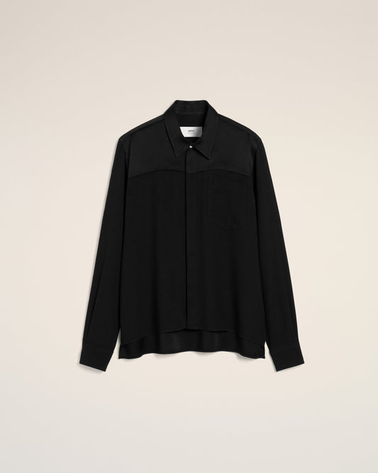 Long sleeve shirt with contrasted top in viscose and acetate crepe with satin back. Classic...