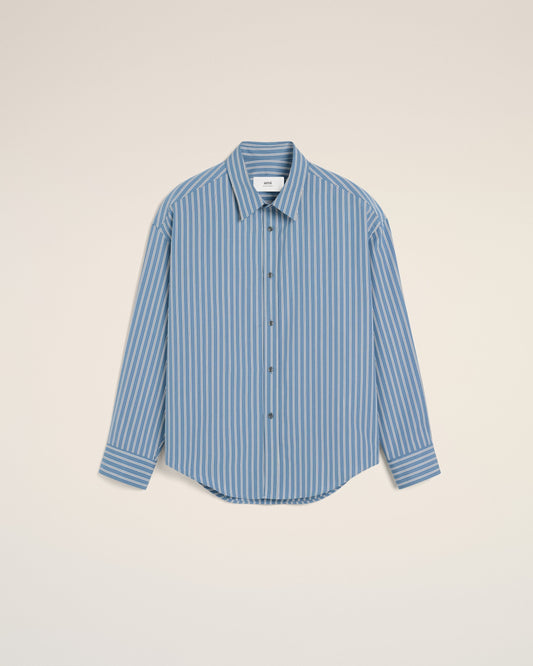 Tonal Ami de Coeur shirt in striped cotton poplin. Boxy fit 79,5 cm center back...