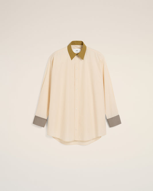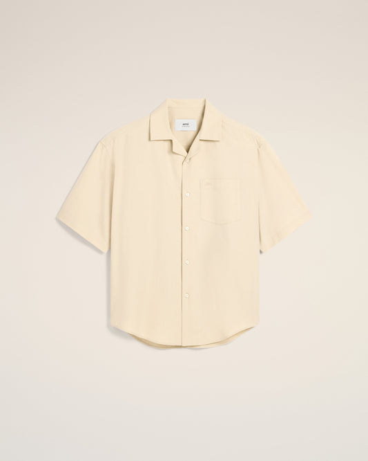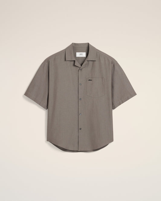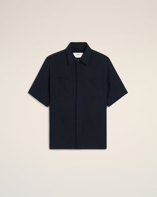 Tonal Ami short sleeves shirt in light cotton gabardine. Boxy fit 78 cm center back...