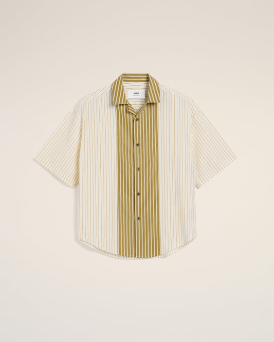 White And Khaki Cotton Short Sleeve Boxy Shirt