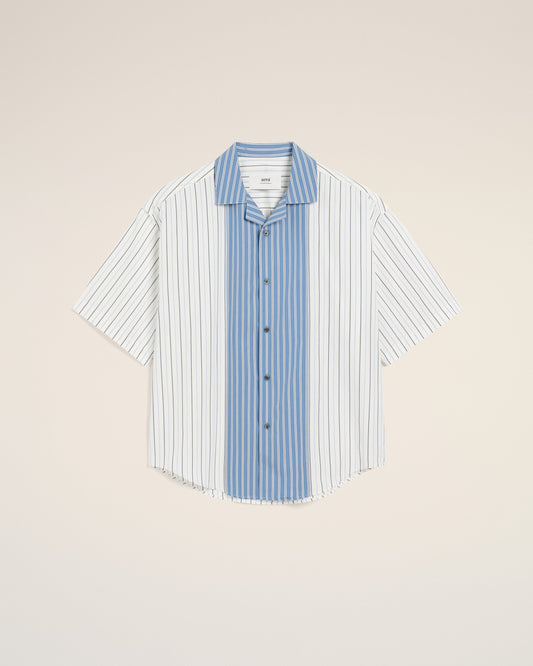 White And Blue Cotton Short Sleeve Boxy Shirt