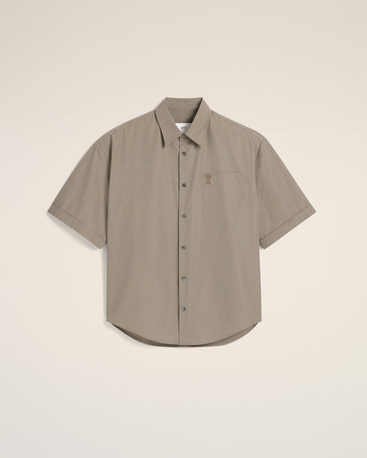 Tonal Ami de Coeur short sleeves shirt in cotton gabardine. Boxy fit 77 cm center back...