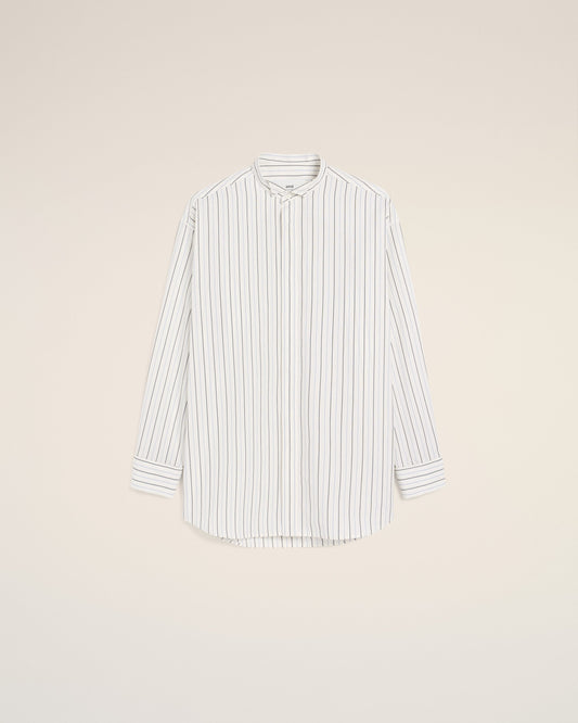 Wingtip collar shirt in cotton poplin double stripes. Oversized fit 88 cm center back length...