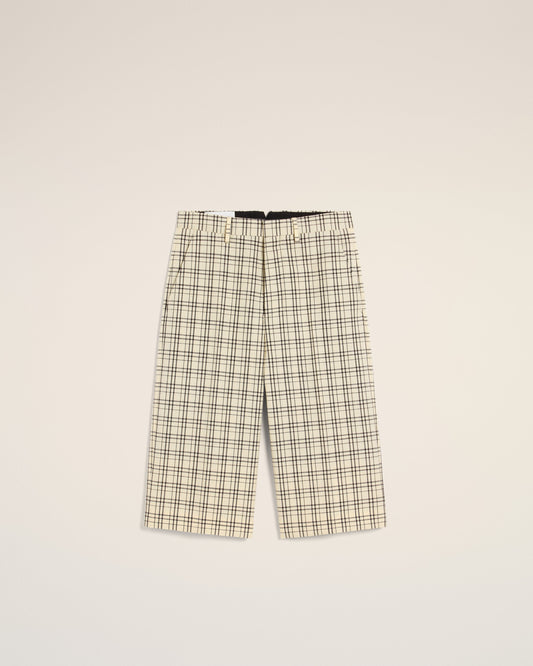 Wide bermuda in checked wool canvas. Wide fit 30 cm bottom leg width (size 40)...