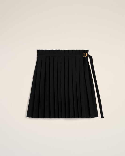 Black Wool Twill Short Pleated Skirt