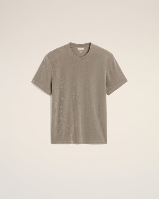 T-shirt in light shiny rib jersey. 66 cm center back length (size M) Silver engraved...
