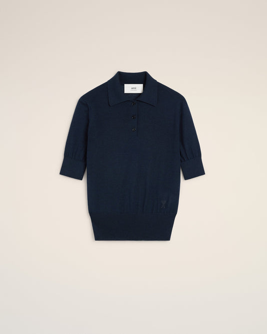 Navy Wool Silk Tonal Ami de Coeur Polo