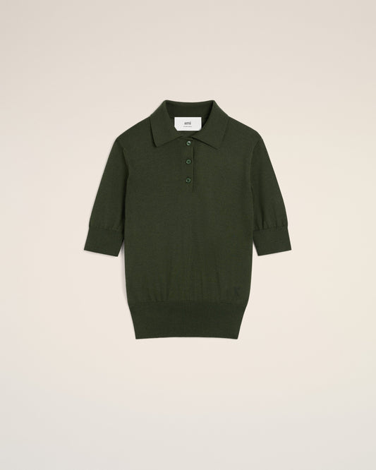 Polo in extrafine wool silk. Jersey stitch Tonal Ami de Coeur embroidery on body bottom ...