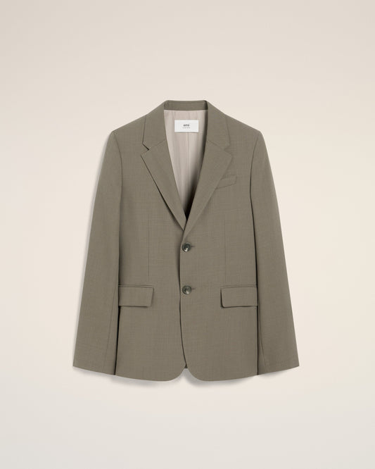 Two buttons jacket in light wool gabardine. Classic fit 74 cm center back length...