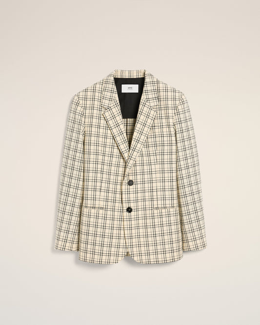 Semi-lined jacket in checked wool canvas. Straight fit 76 cm center back length (size...