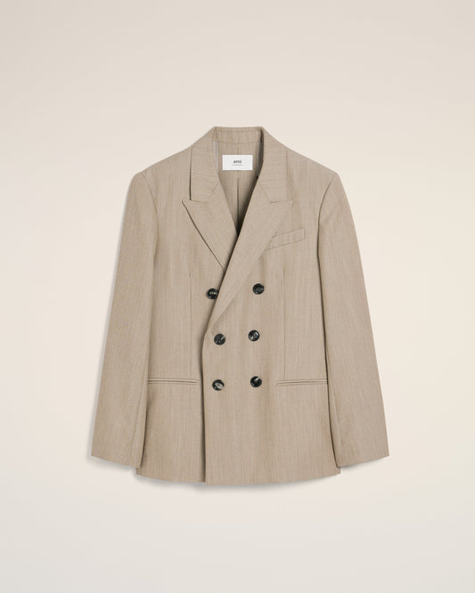 Double breasted jacket in soft wool gabardine. Regular fit 77 cm center back length (size...