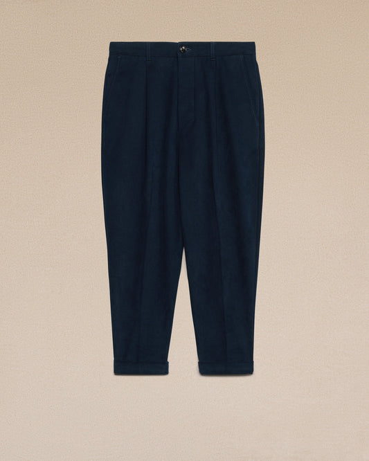 Large fit trousers in light wool canvas. Wide fit 28 cm bottom leg width...