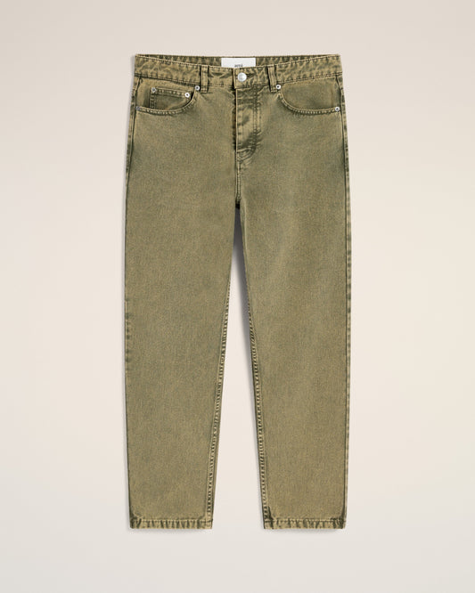 Tapered fit jeans in washed colored cotton twill. Tapered fit 18 cm bottom leg width...