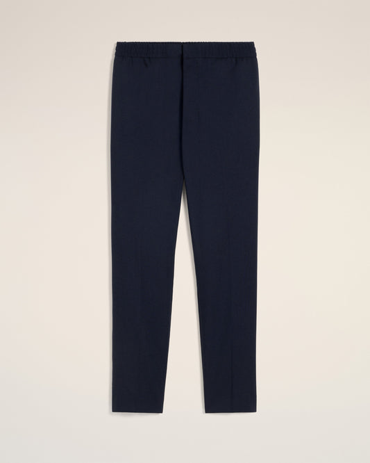 Elasticated waist trousers in wool canvas. Straight fit 20 cm bottom leg width (size 40)...