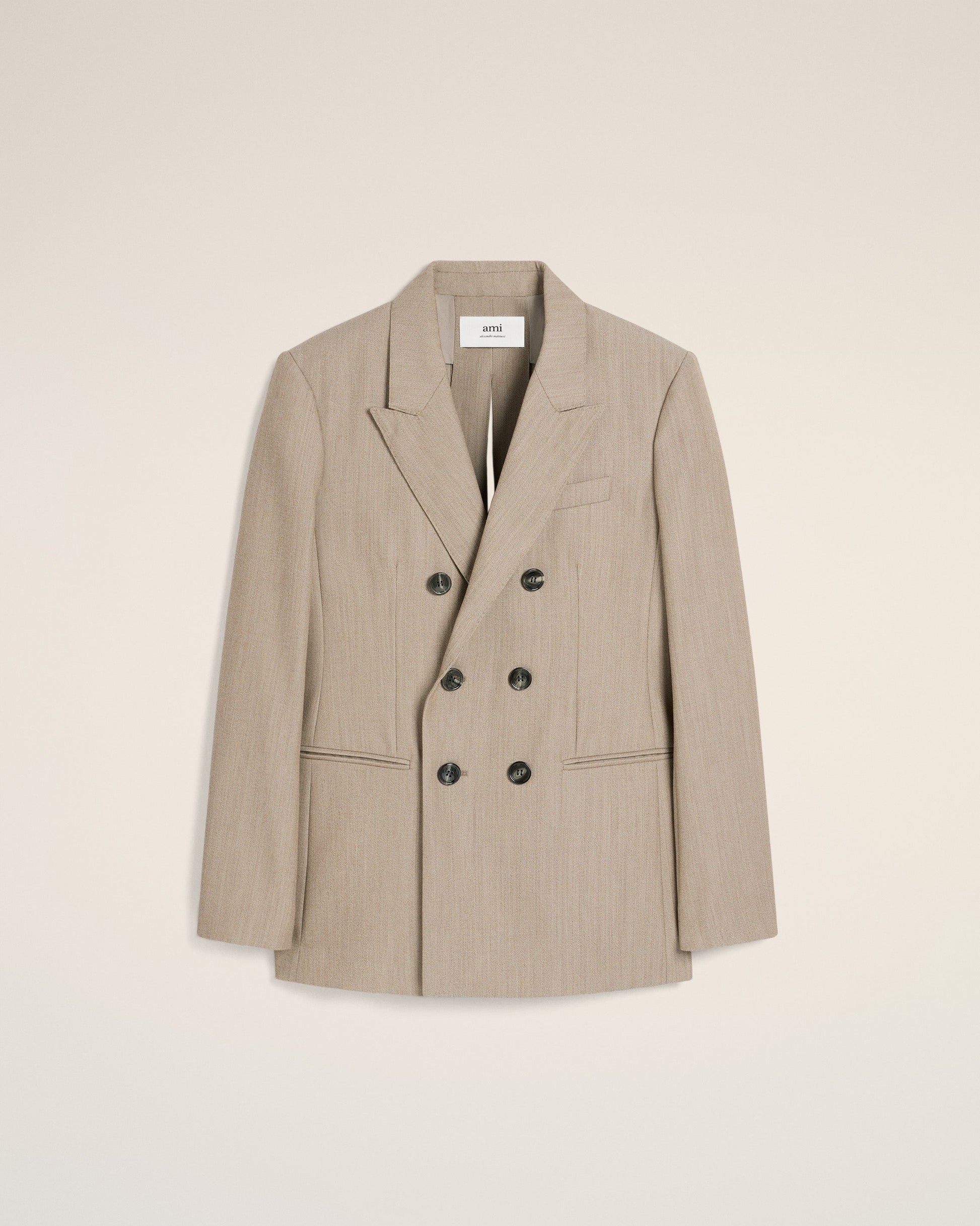 Beige Wool Back Slit Double Breasted Jacket