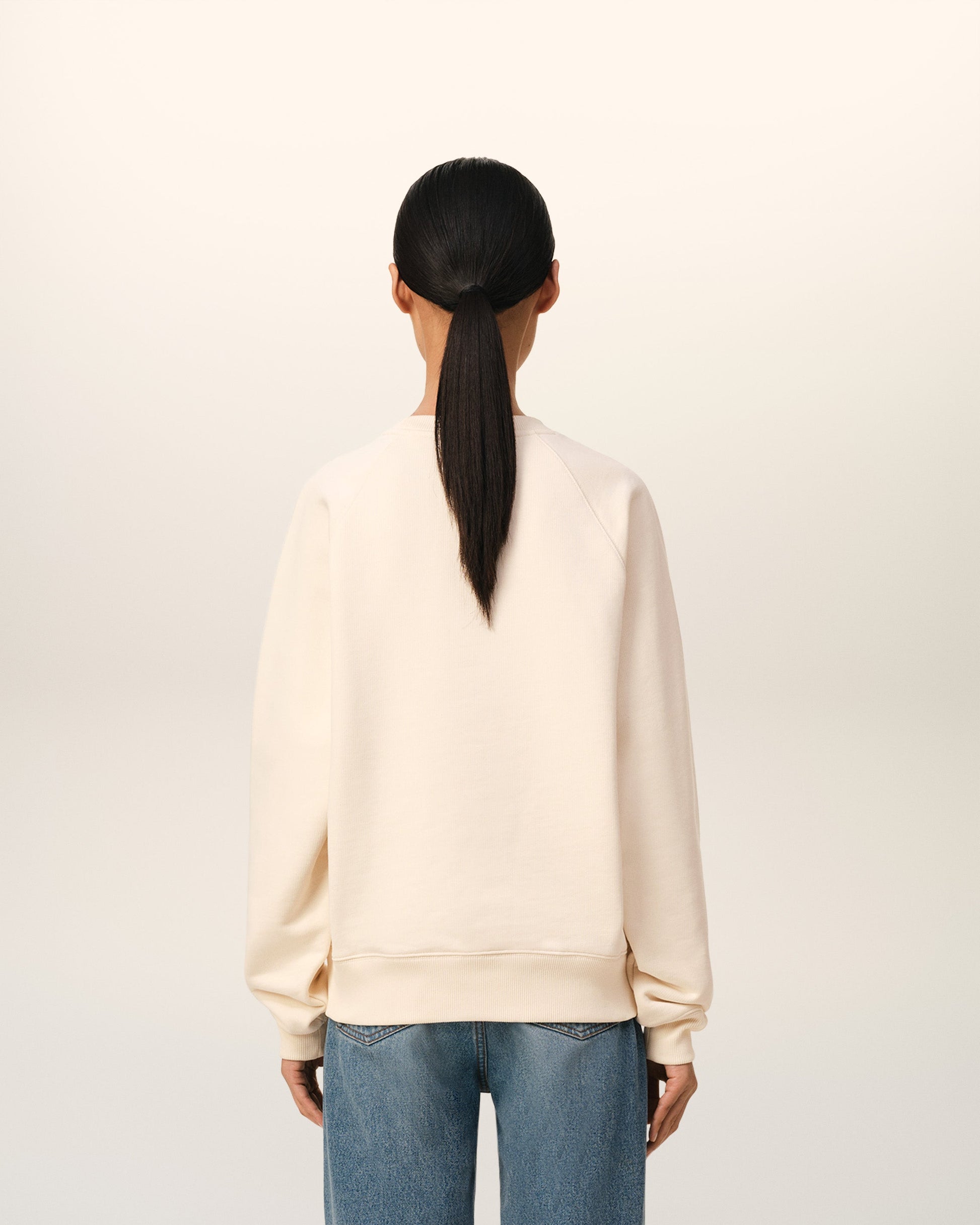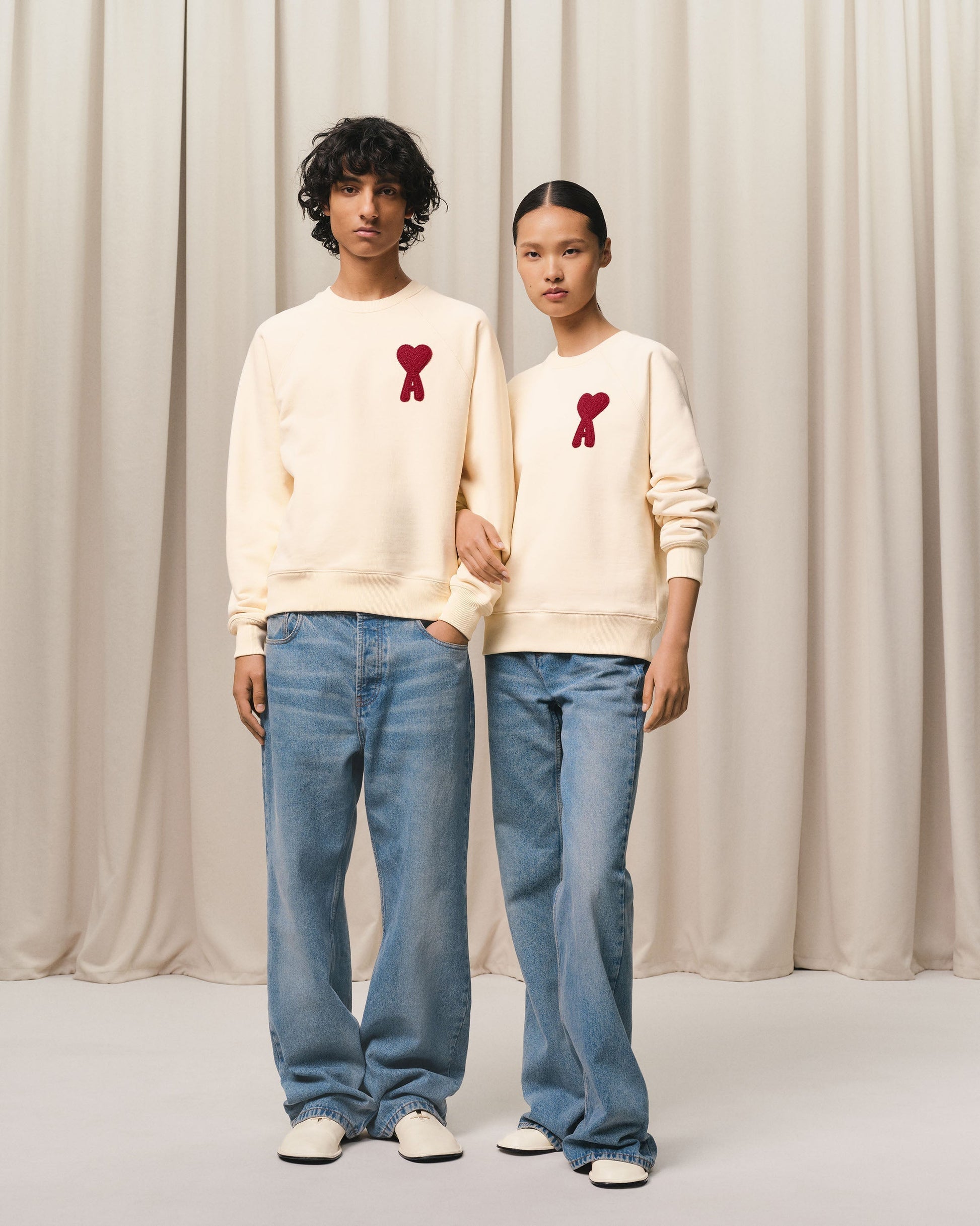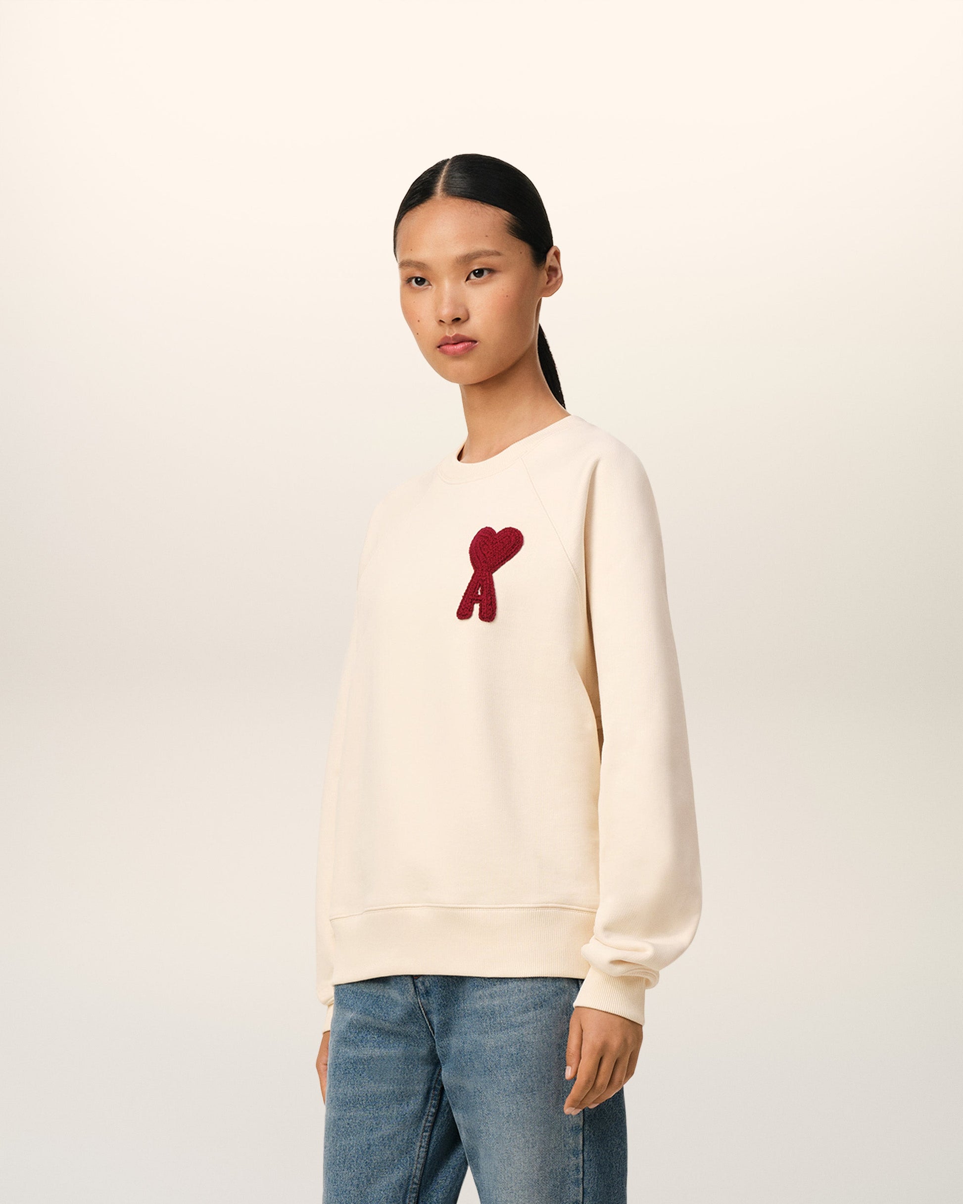 Ami de Coeur sweatshirt in heavy loopback organic cotton fleece. Boxy fit Unisex product 61 cm center back length (XS size) 65 cm center back length (M size) Red Ami de Coeur knitted patch Tonal "AMI" embroidery under back neckline Raglan sleeves Made in Portugal (with love) REF: USW065.747.136