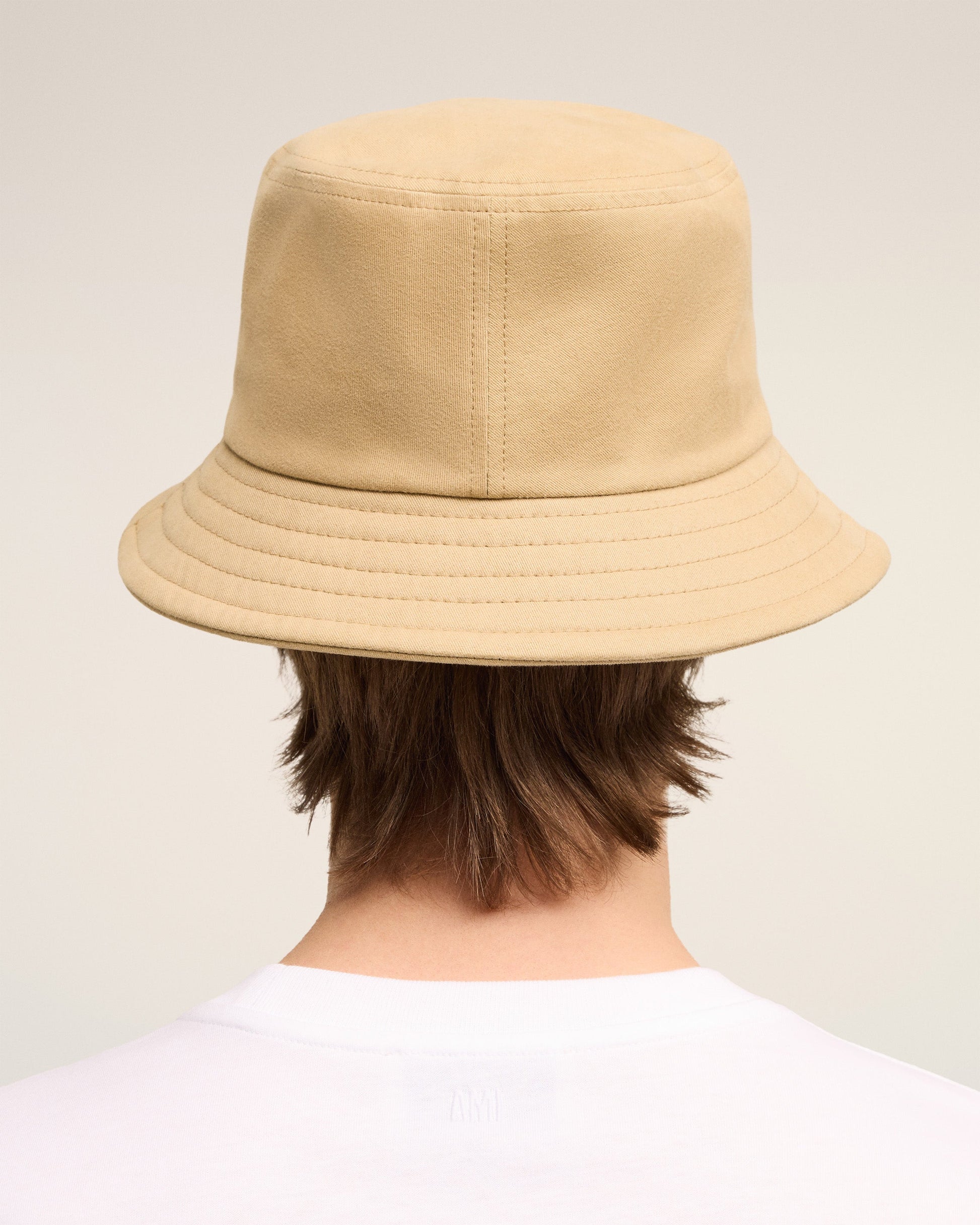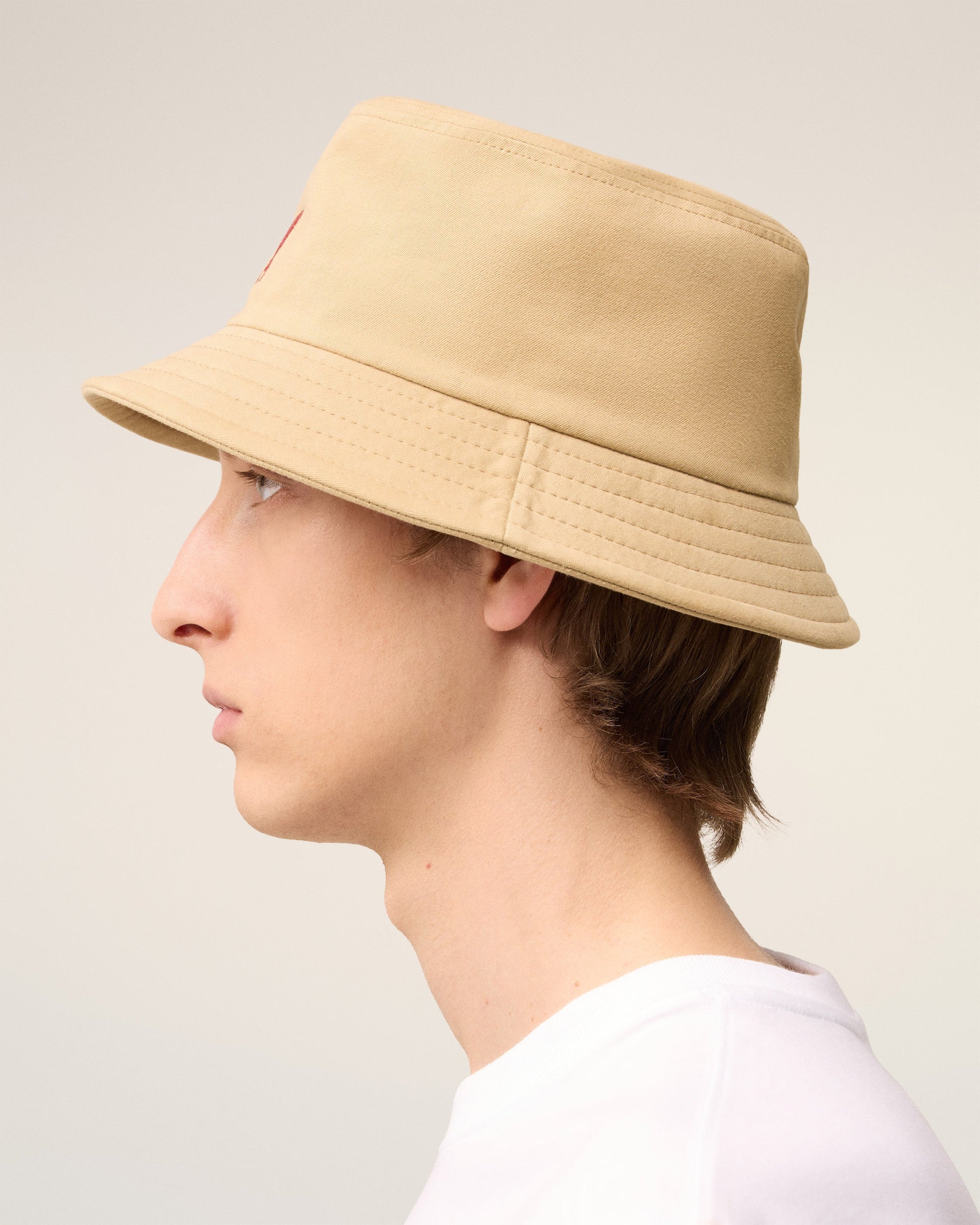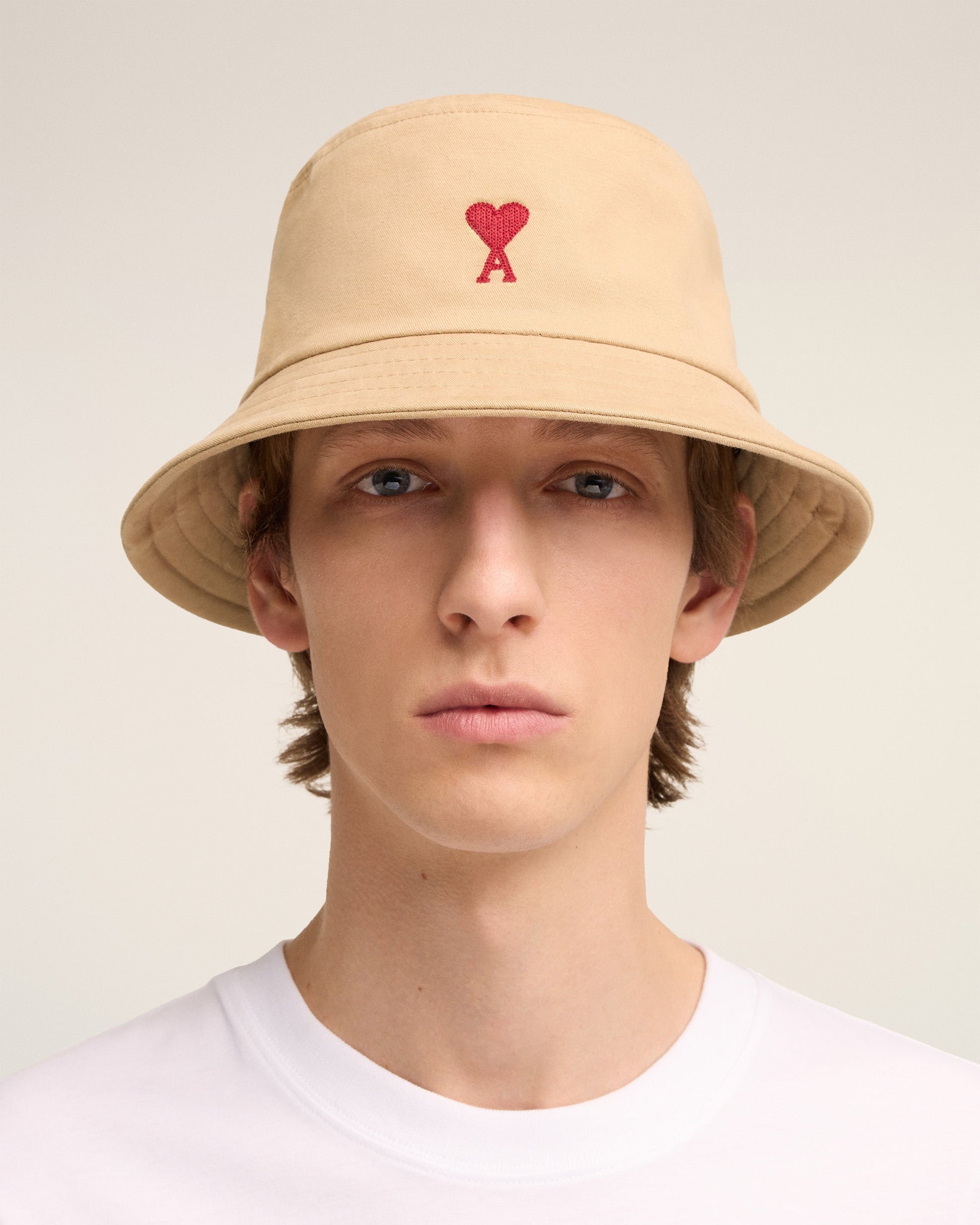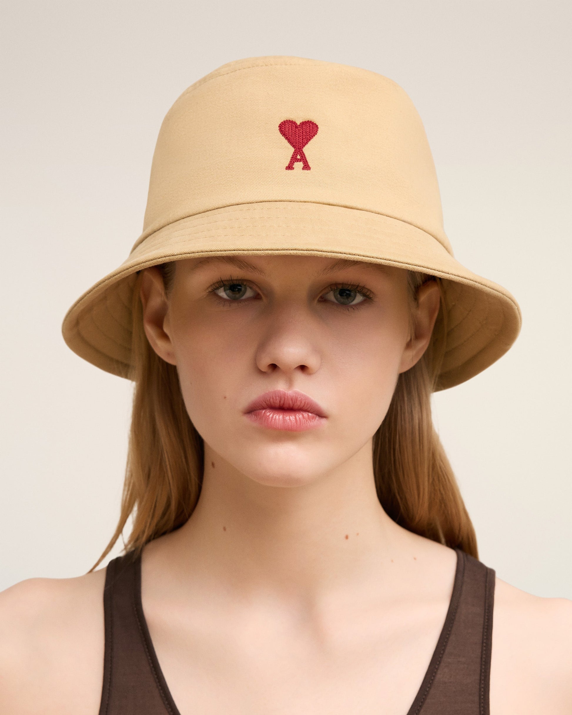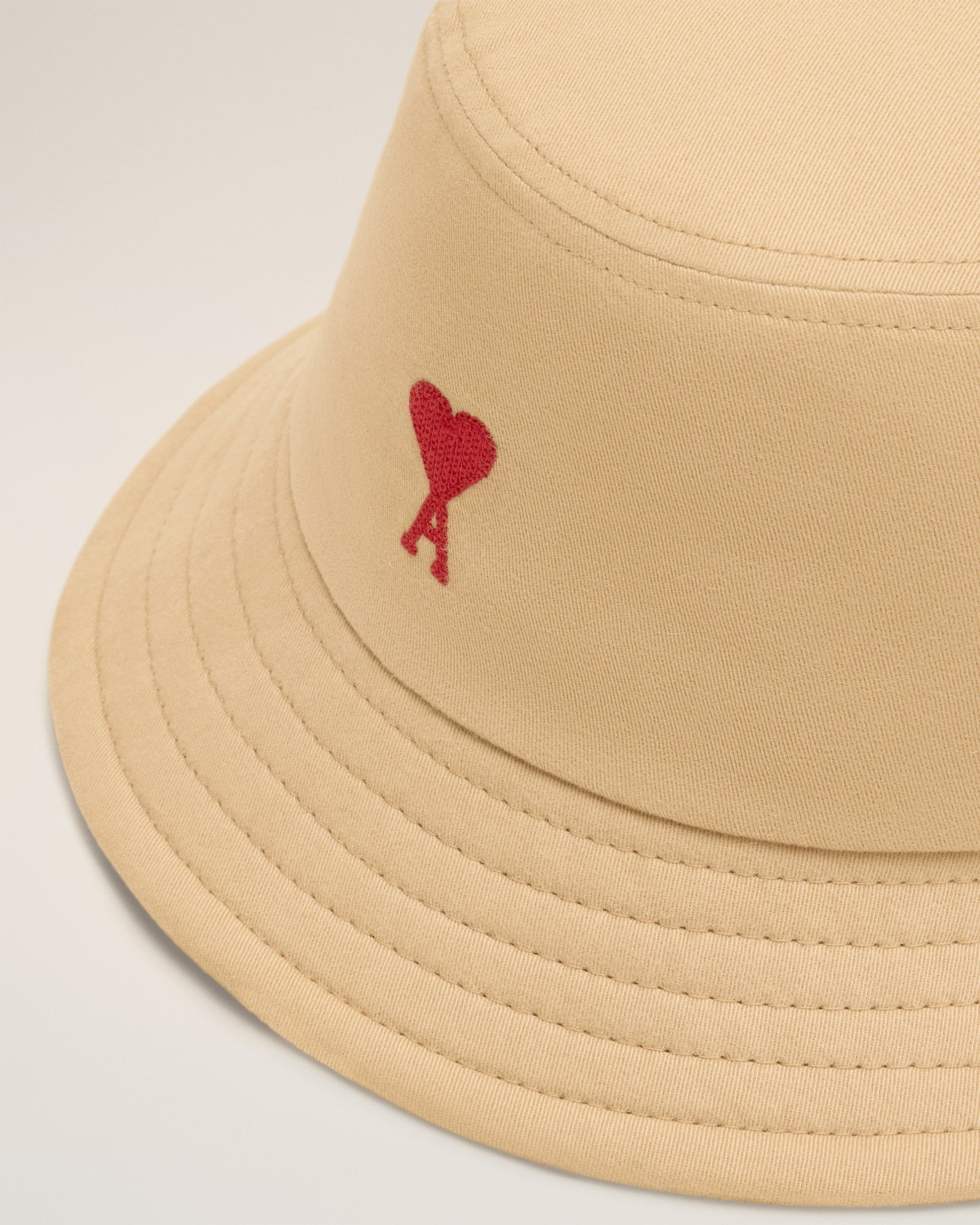 Bucket hat in cotton gabardine with peach effect. Red Ami de Coeur chain stitch embroidery Made in Italy (with love) REF : UHA246.AW0041.255