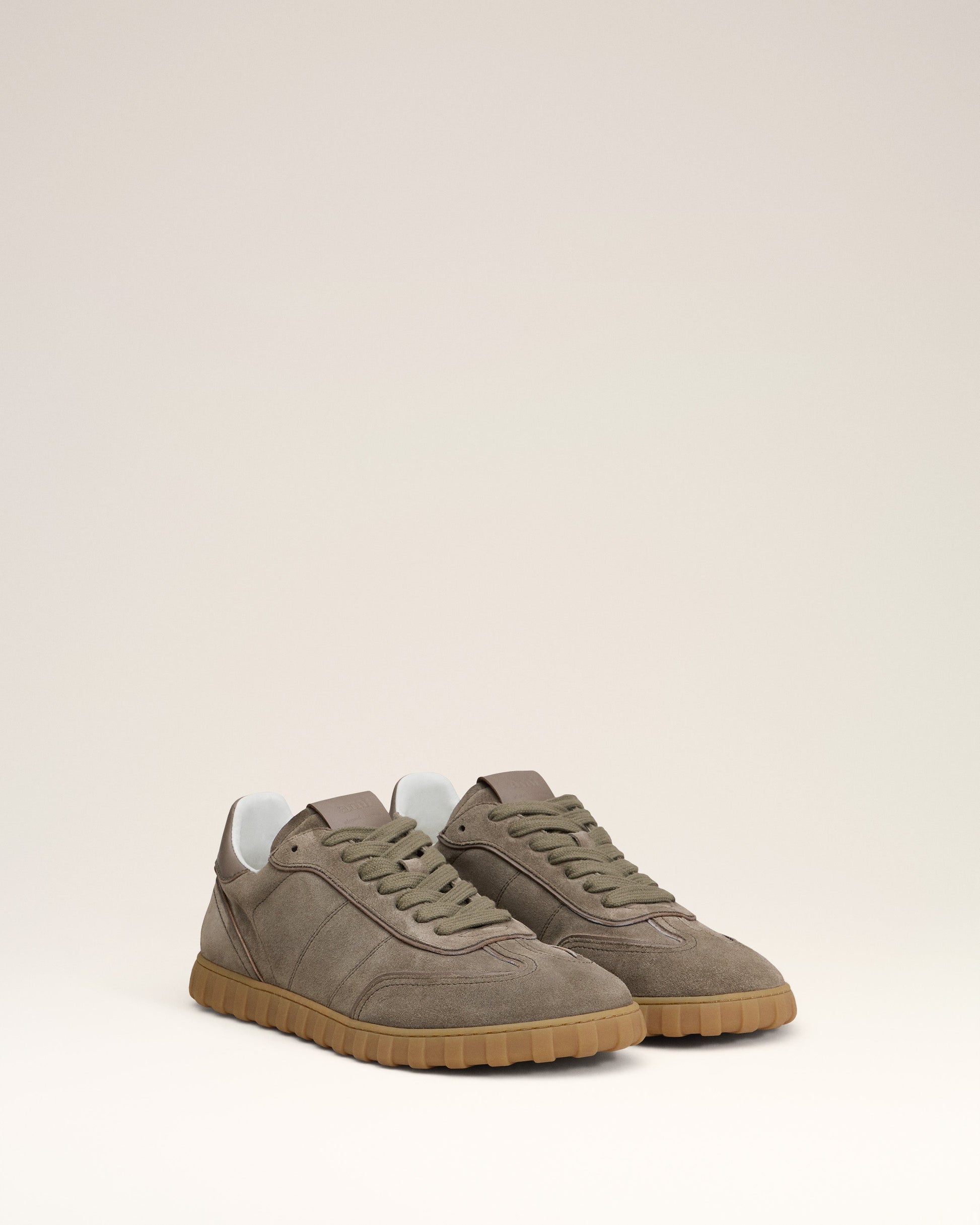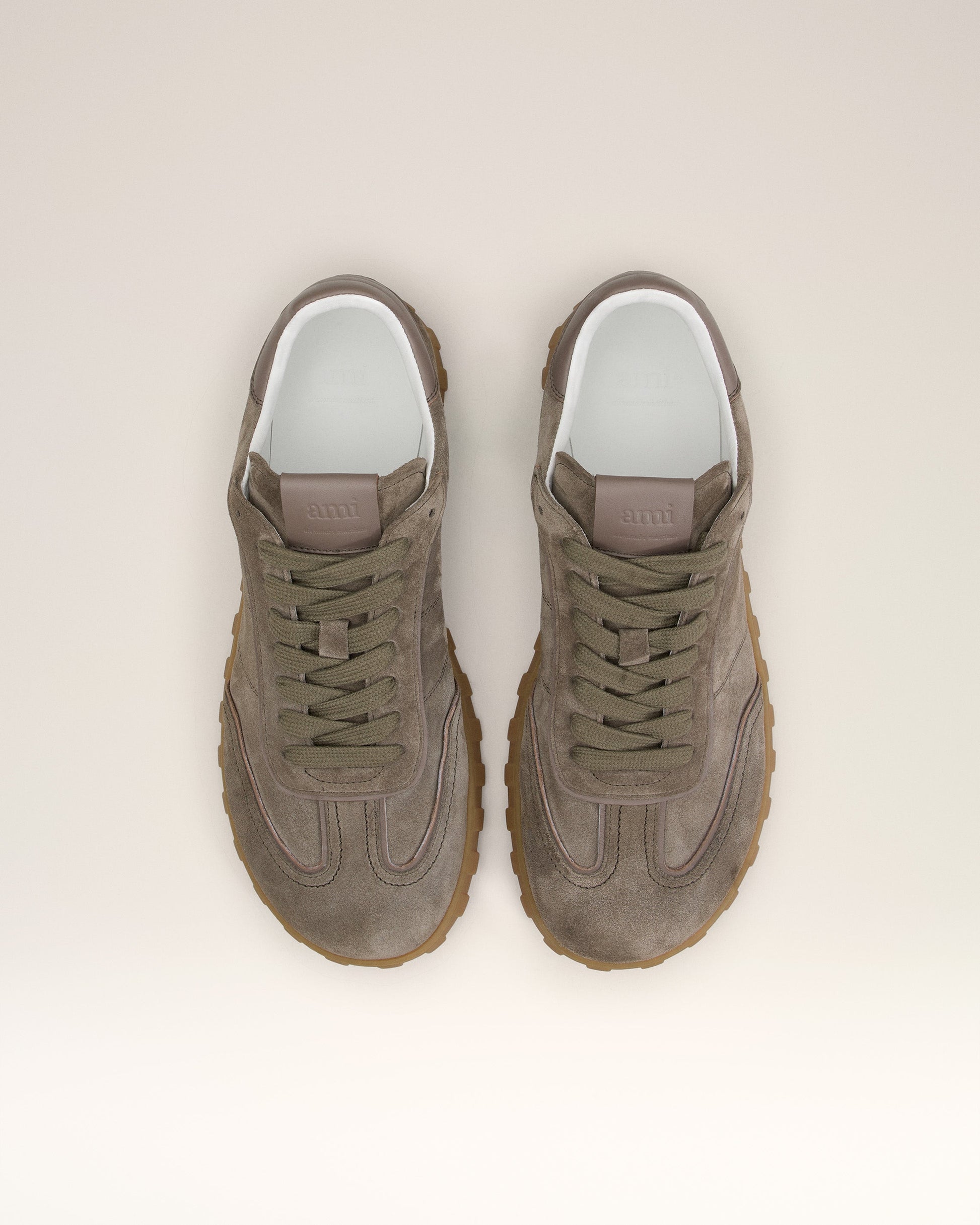 Low-top lace-up sneakers in split leather. Embossed Ami de Coeur logo tonal at the back Leather debossed "ami alexandre mattiussi" logo tonal on the tongue Embossed "ami alexandre mattiussi" logo tonal on the insole Leather lining Exclusive sole developed by Ami Paris Made in Portugal (with love) REF: USN433.872.0952