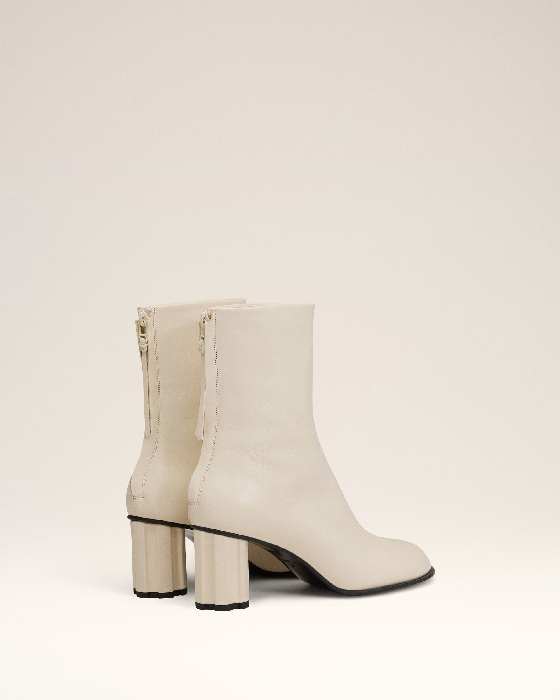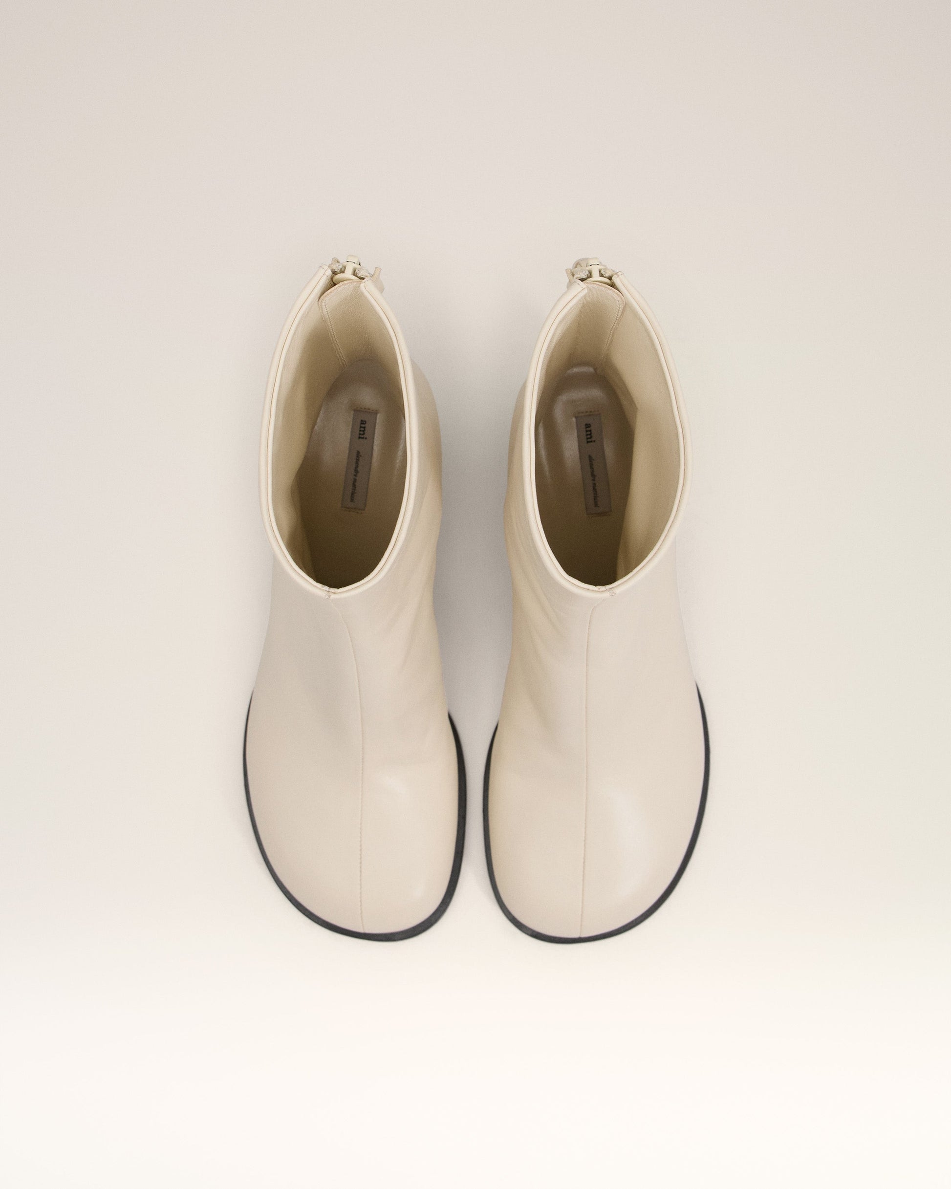 Anatomical-toe boots in shiny crispy leather. Shiny smooth leather lining "Ami alexandre mattiussi" label on the insole Tonal zip Signature piano heel Leather covered heel Total heel height 65 mm Ami de Coeur logo on the outsole Leather sole Made in Portugal (with love) REF: FSV512.AL0095.136