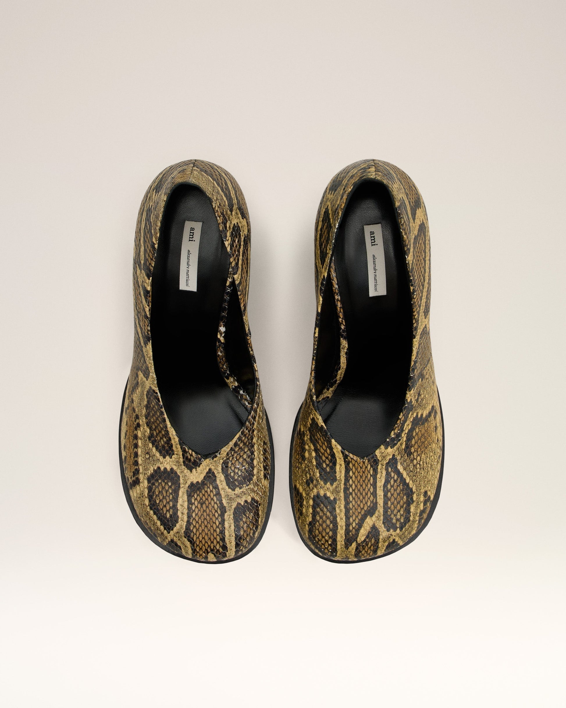 Anatomical-toe pumps in snake embossed leather. Shiny smooth leather lining "Ami alexandre mattiussi" label on the insole Signature piano heel Leather covered heel Total heel height 85 mm Ami de Coeur logo on the outsole Leather sole Made in Portugal (with love) REF: FSV708.AL0107.113