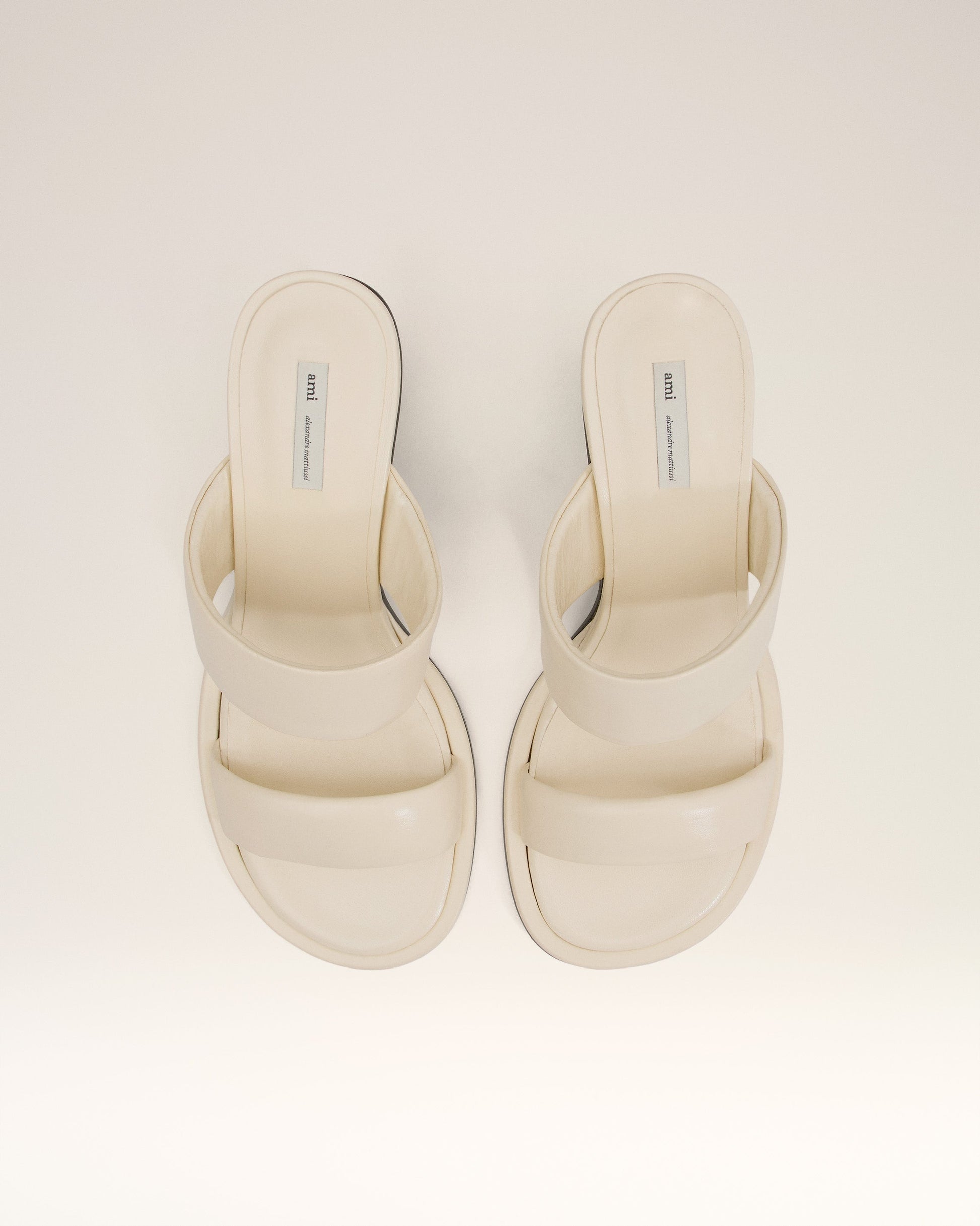 Anatomical-toe sandals in shiny crispy leather. Shiny smooth leather lining "Ami alexandre mattiussi" label on the insole Signature piano heel Leather covered heel Total heel height 65 mm Ami de Coeur logo on the outsole Leather sole Made in Portugal (with love) REF: FSV908.AL0095.136