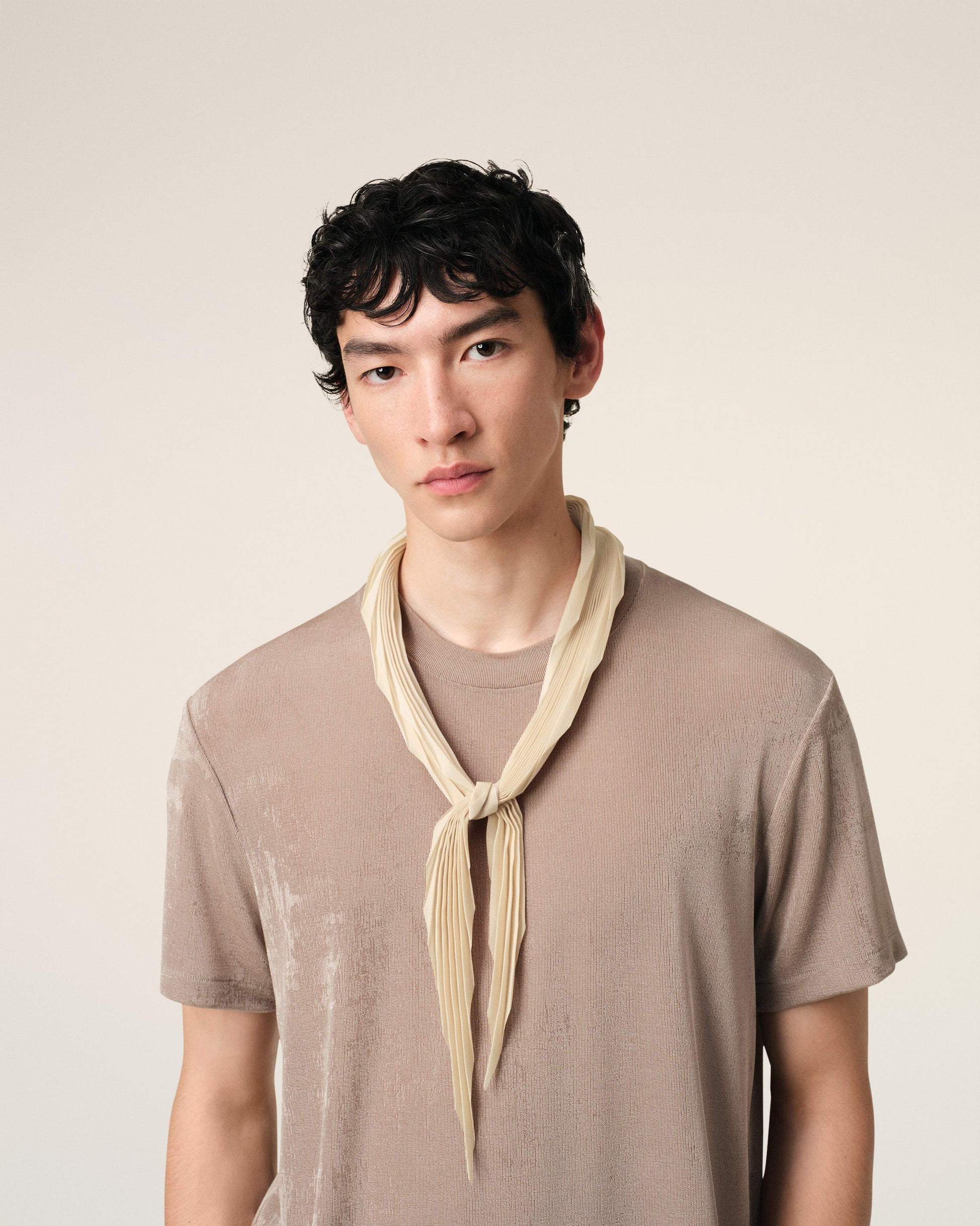 Beige Pleated Diamond Shaped Scarf