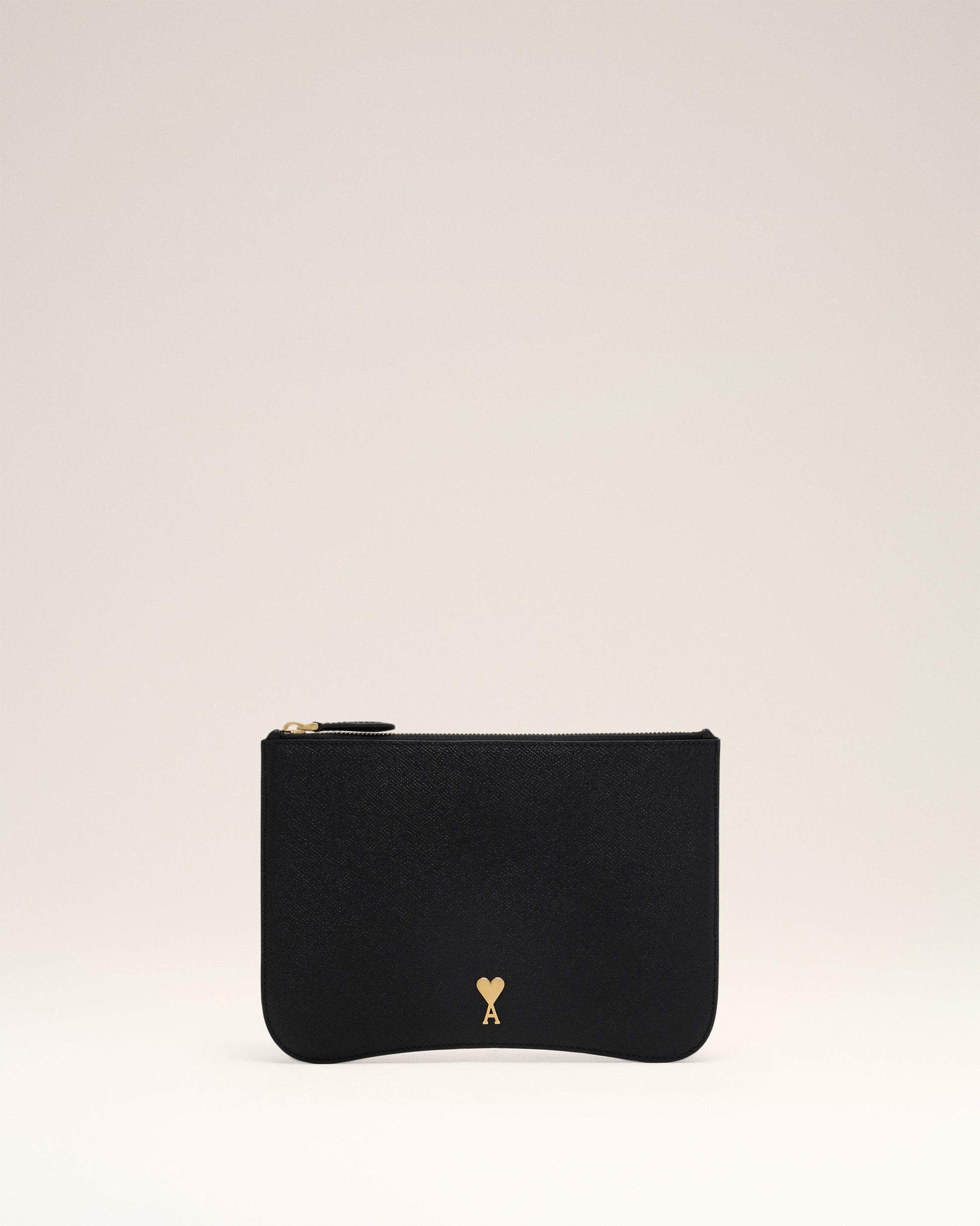 Paris Paris Card pouch in grained leather. Cotton canvas lining Ami de Coeur stud One central compartment with one inside patched pocket Metal hardware in vibrated brass color Size: 25x17.5 cm Made in Morocco (with love) REF : USL025.AL0036.0015