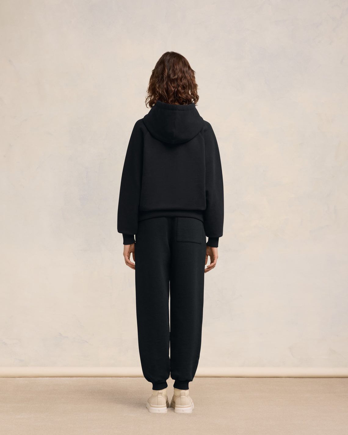 Hoodie in heavy loopback organic cotton fleece. Boxy fit Unisex product 61 cm center back length (size XS) 65 cm center back length (size M) Red Ami de Coeur chest embroidery Tonal AMI embroidery on the back Raglan sleeves Nickel color metal ends and ami engraved eyelets Made in Portugal (with love) REF : BFUSW205.747.001