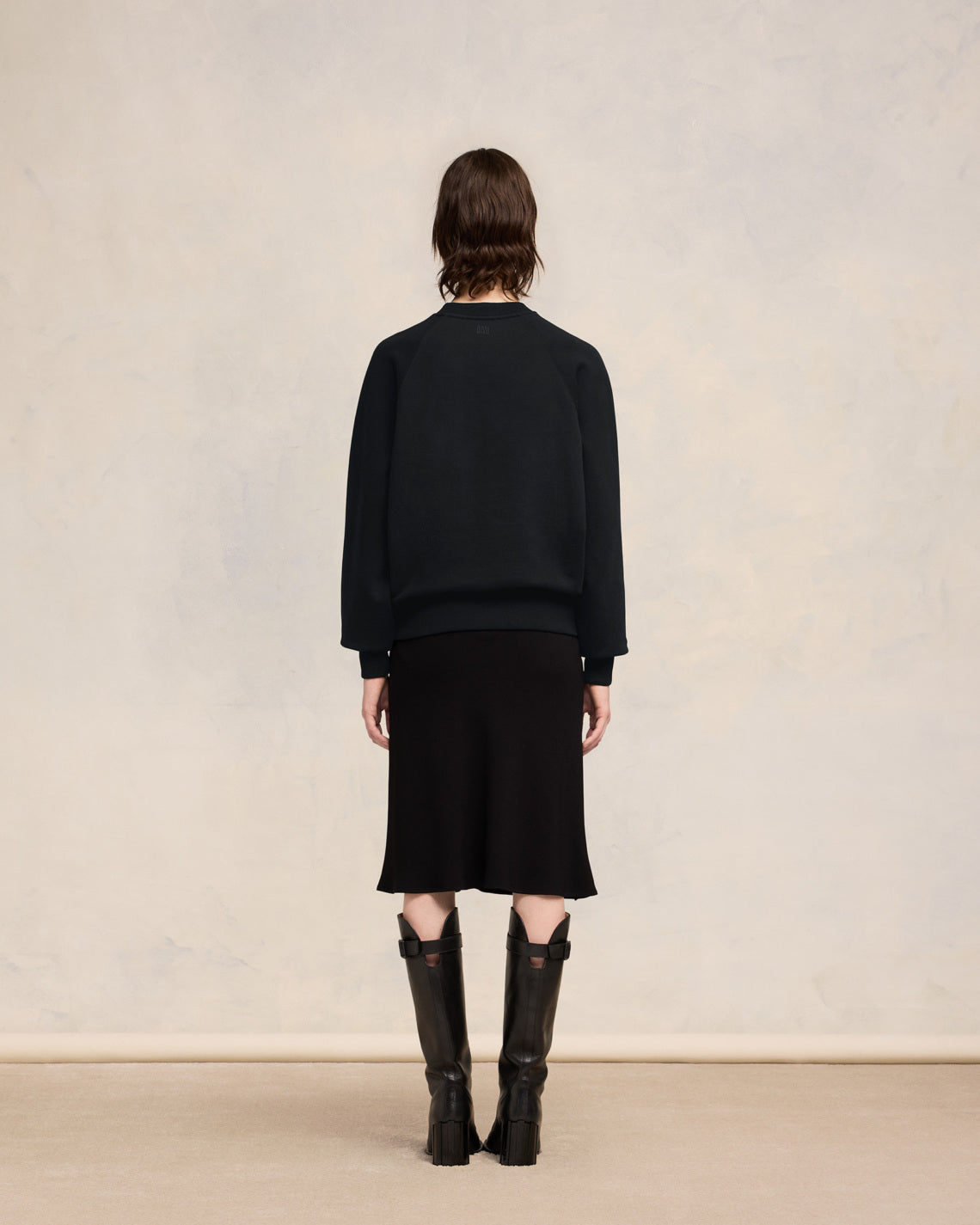 Sweatshirt in heavy loopback organic cotton fleece. Boxy fit Unisex product 61 cm center back length (size XS) 65 cm center back length (size M) Red Ami de Coeur chest embroidery Tonal AMI embroidery under back neckline Raglan sleeves Made in Portugal (with love) REF : BFUSW005.747.001