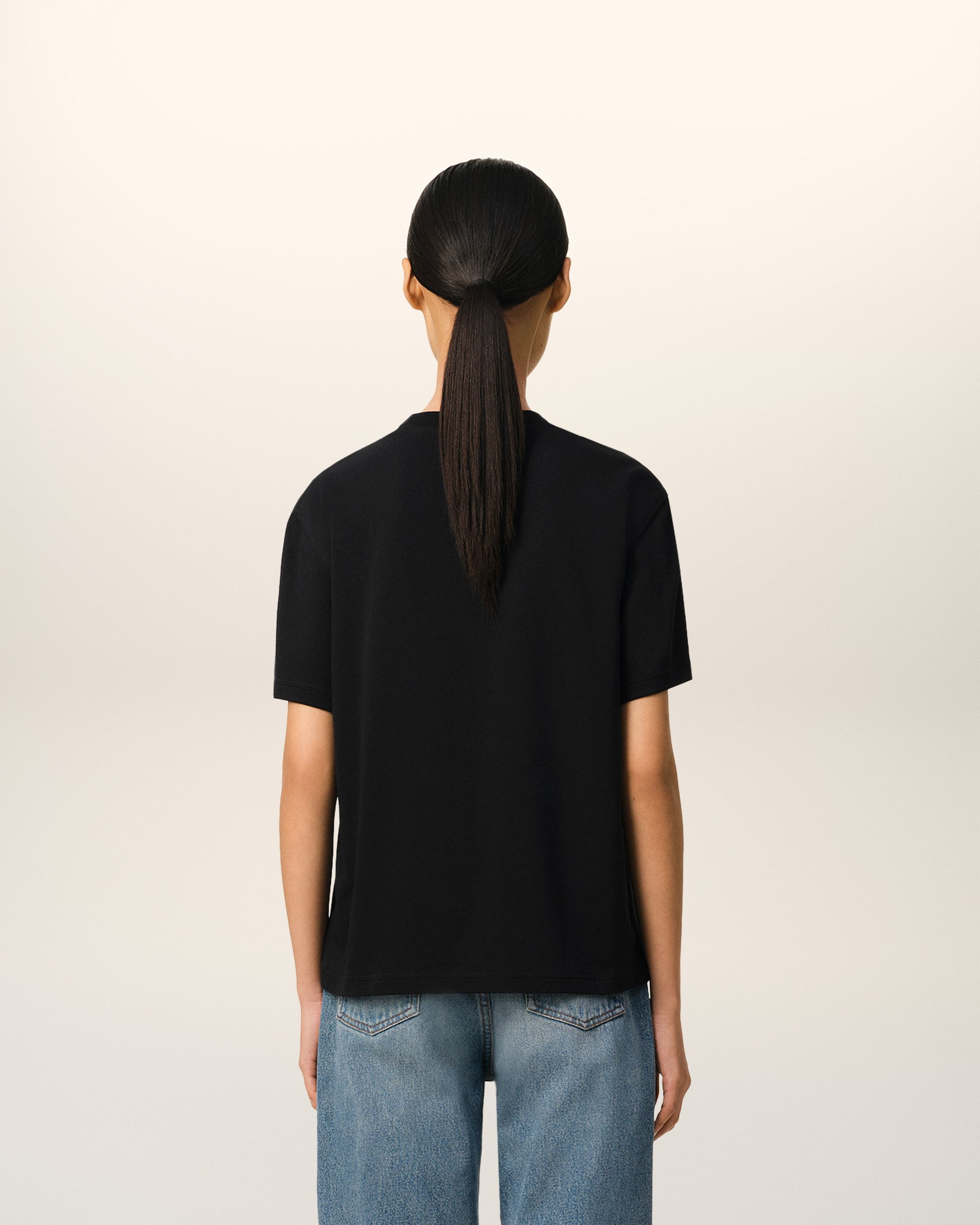 T-shirt in heavy jersey organic cotton. Unisex product Classic fit Embossed Ami de Coeur Tonal "ami" embroidery under back neckline 58 cm center back length (size XS) 66 cm center back length (size M) Made in Portugal (with love) REF: UTS027.726.001
