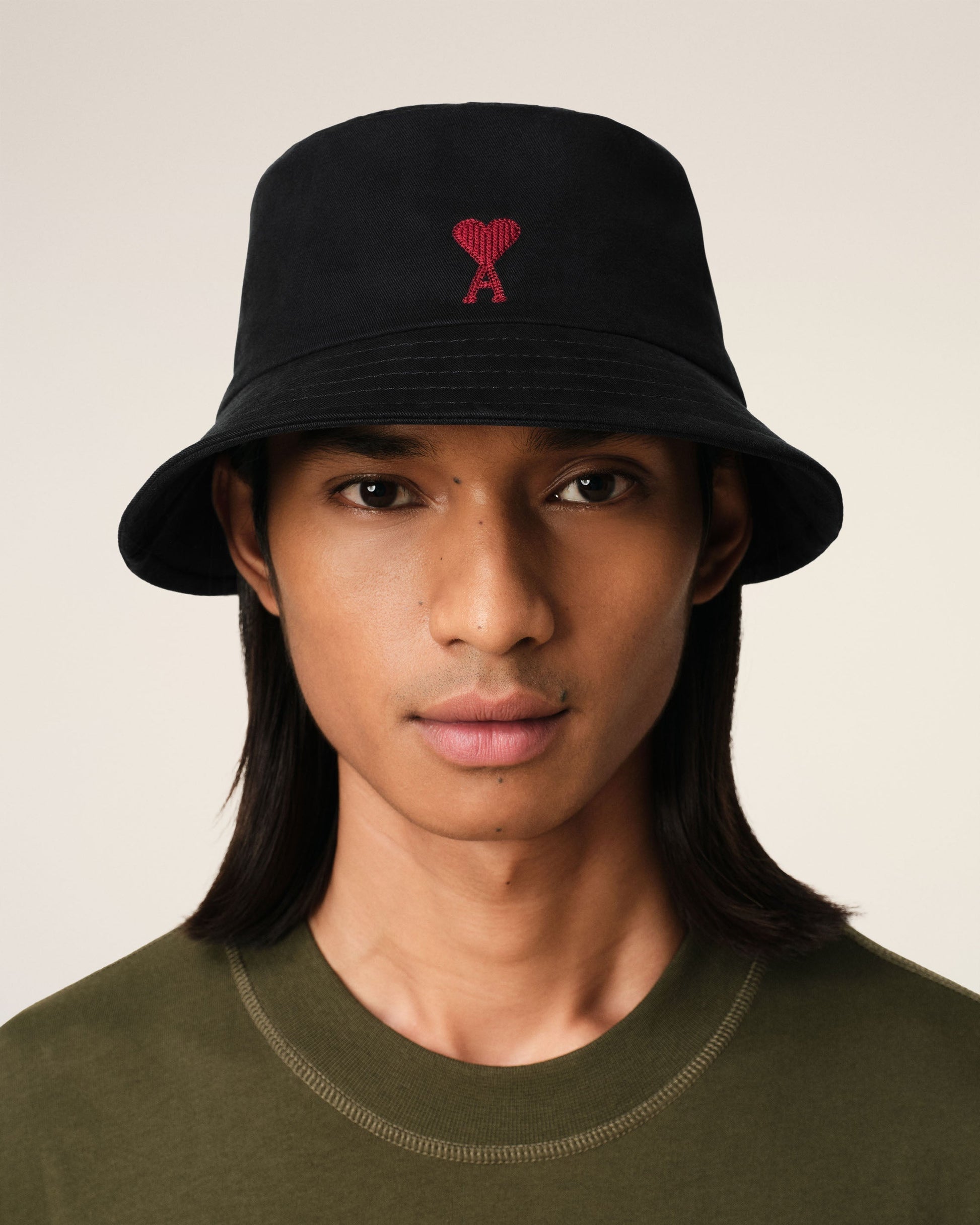 Bucket hat in cotton gabardine with peach effect. Red Ami de Coeur chain stitch embroidery Cotton lining Made in Italy (with love) REF: UHA246.AW0041.001