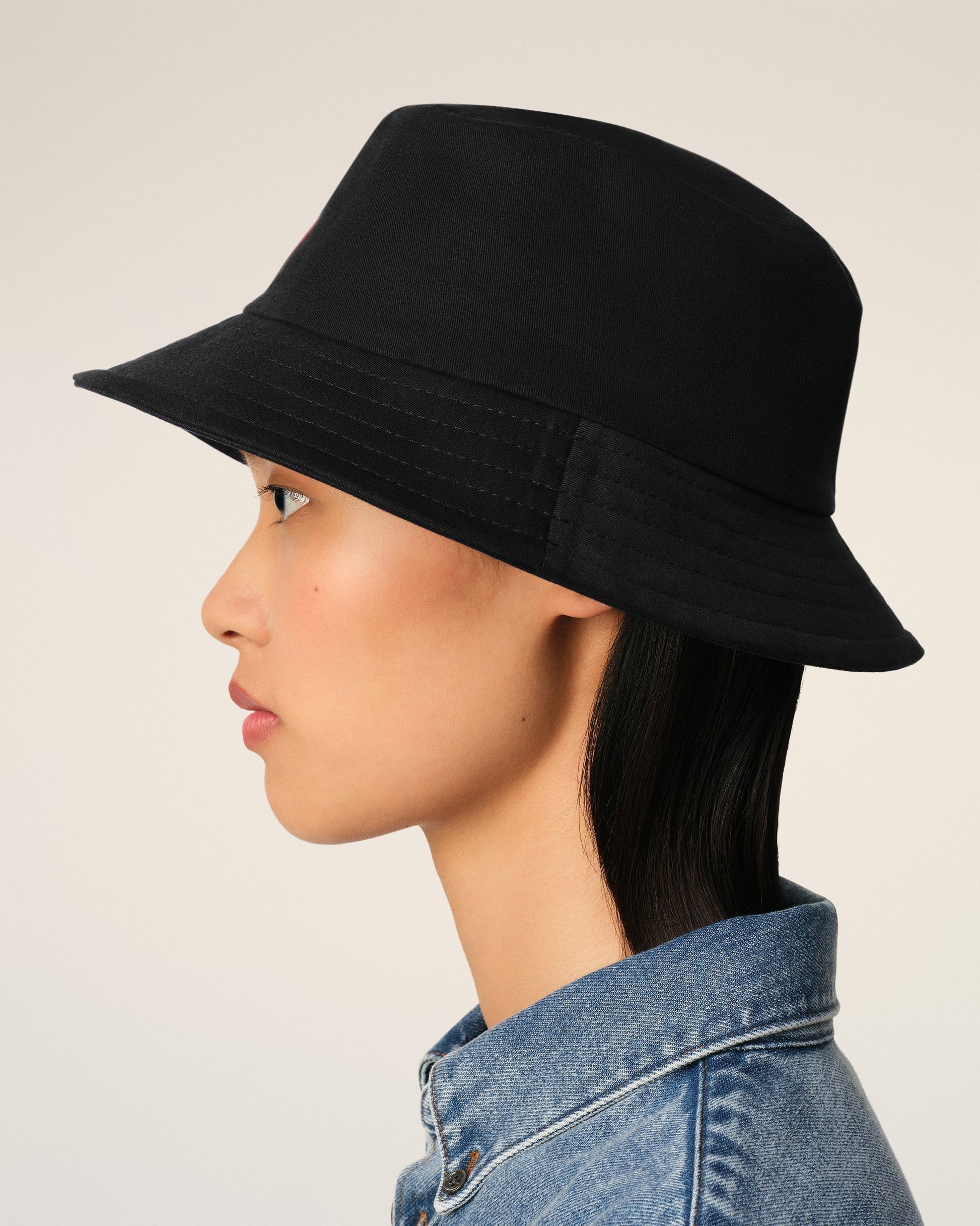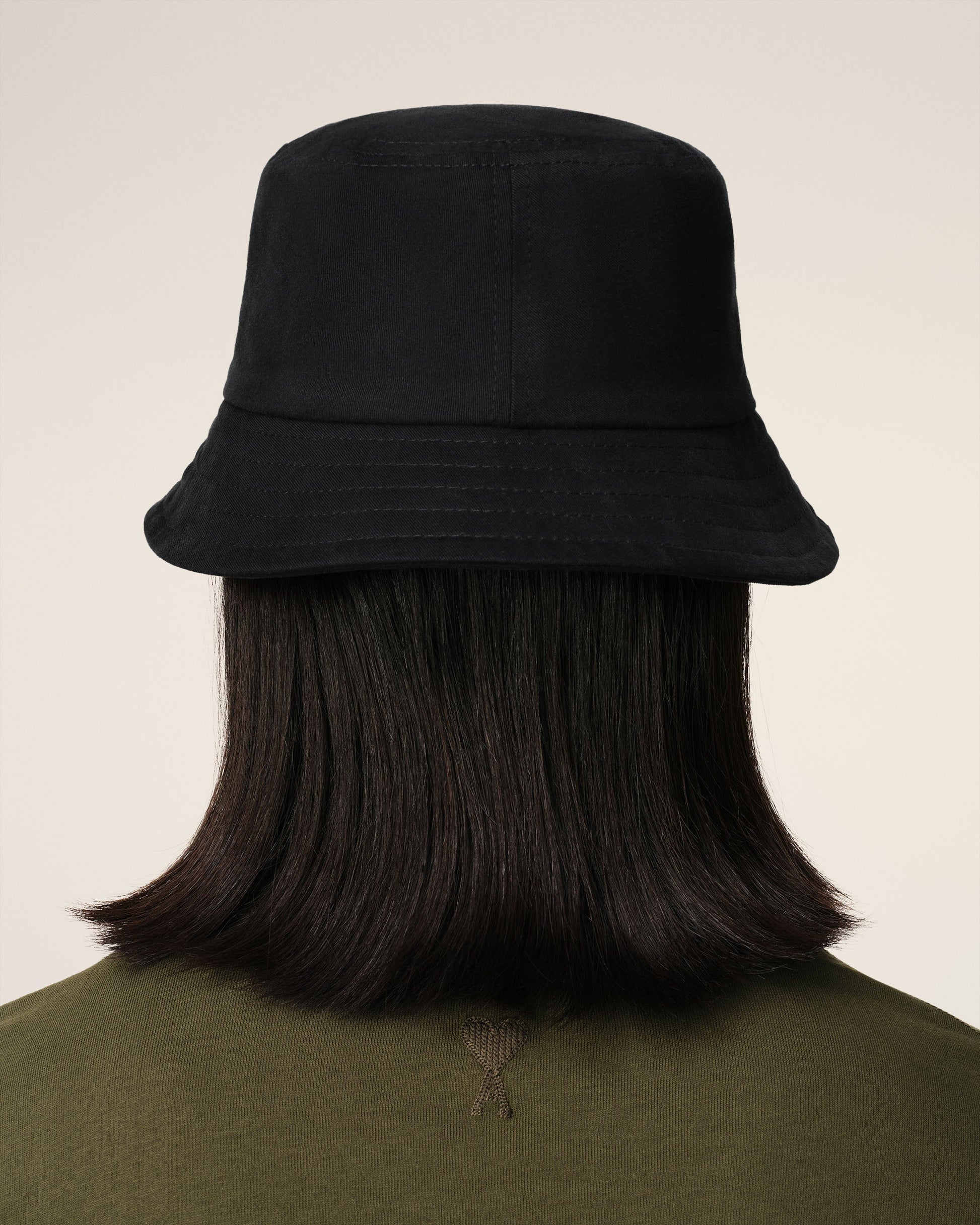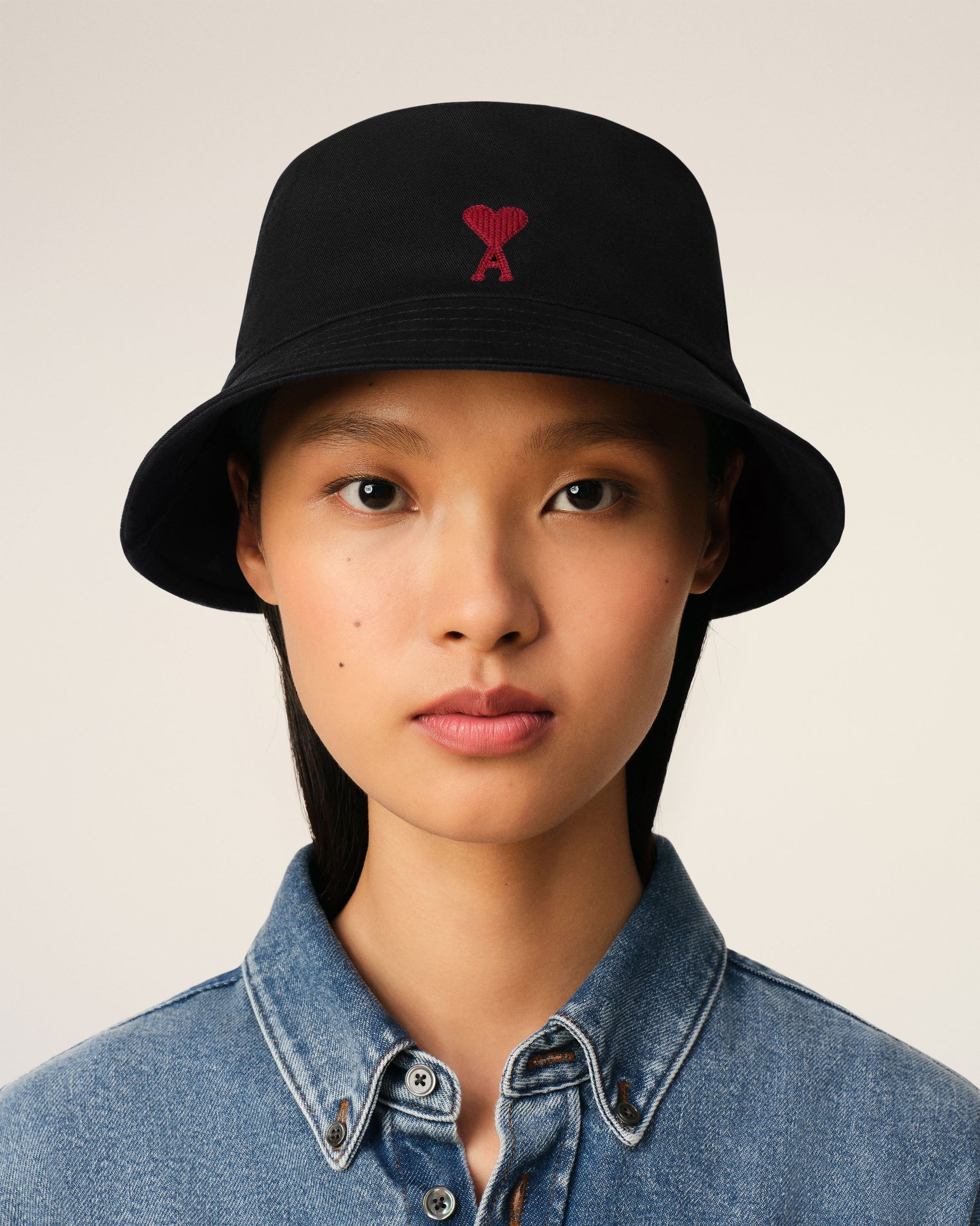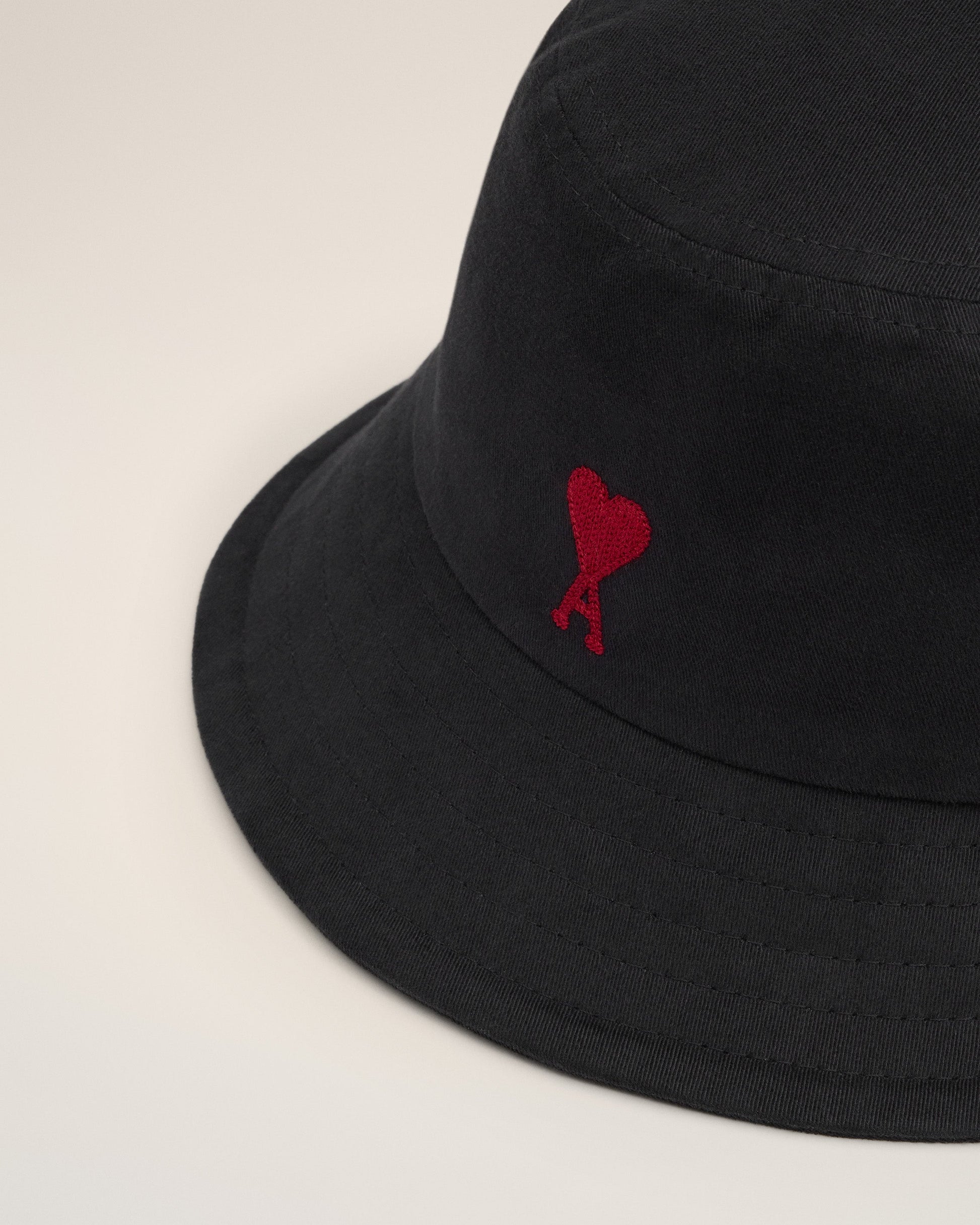 Black Cotton Ami de Coeur Embroidery Bucket Hat