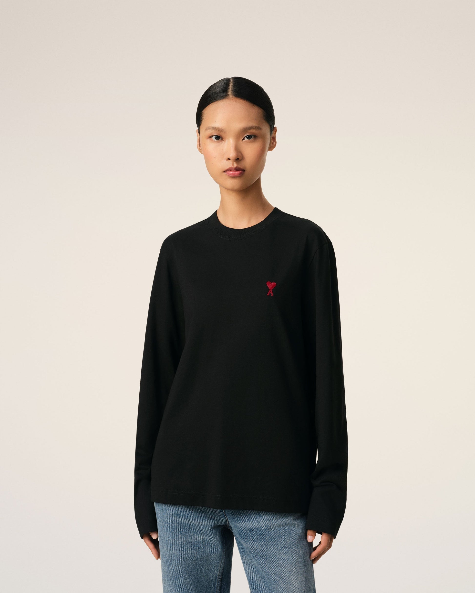 Longsleeves Ami de Coeur T-shirt in organic cotton jersey. Unisex product Classic fit Red Ami de Coeur chest embroidery Tonal "ami" embroidery under back neckline 64,5cm center back length (size XS) 68,5 cm center back length (size M) Made in Portugal (with love) REF: BFUTS235.724.001