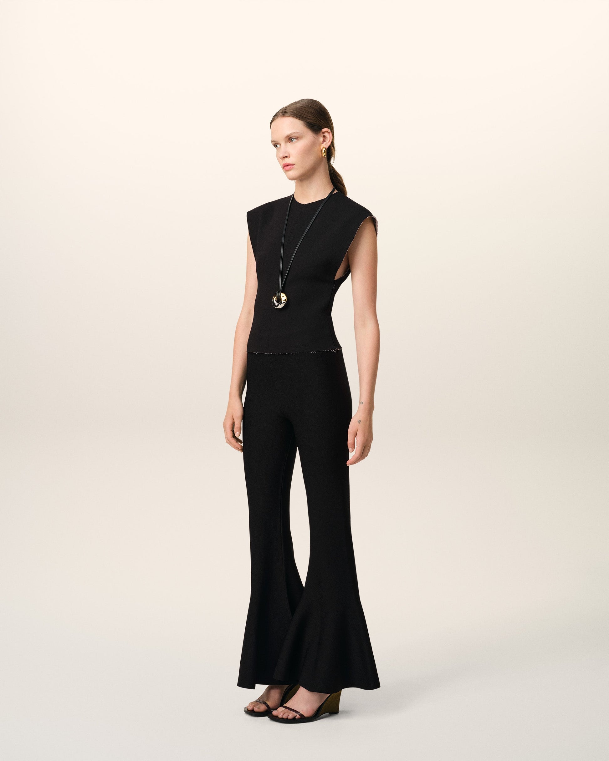 Trousers in compact viscose. 71 cm bottom leg width (size S) Half milano stitch Made in Portugal (with love) REF: FTR764.KN0064.001