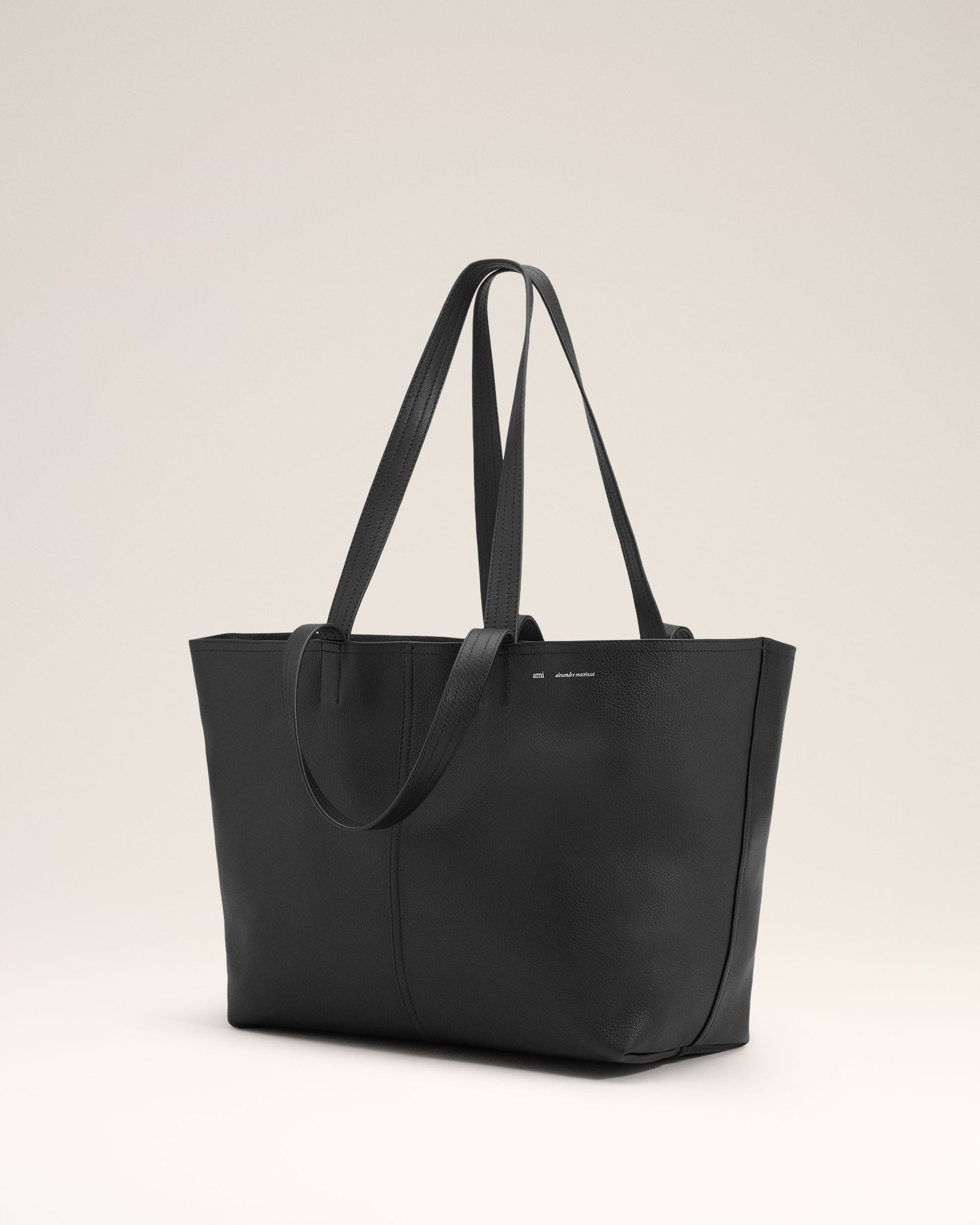 Midi tote bag in smooth leather. Signature stripes on the inside patched pocket and on the removable bottom Leather tie with a hook ring, fixed inside the bag Double handles, shoulder or hand carry Metal hardware in vibrated silver color Size: 35x30x18.5 cm, length at the top 59 cm Made in Spain (with love) REF: ULL025.AL0090.001