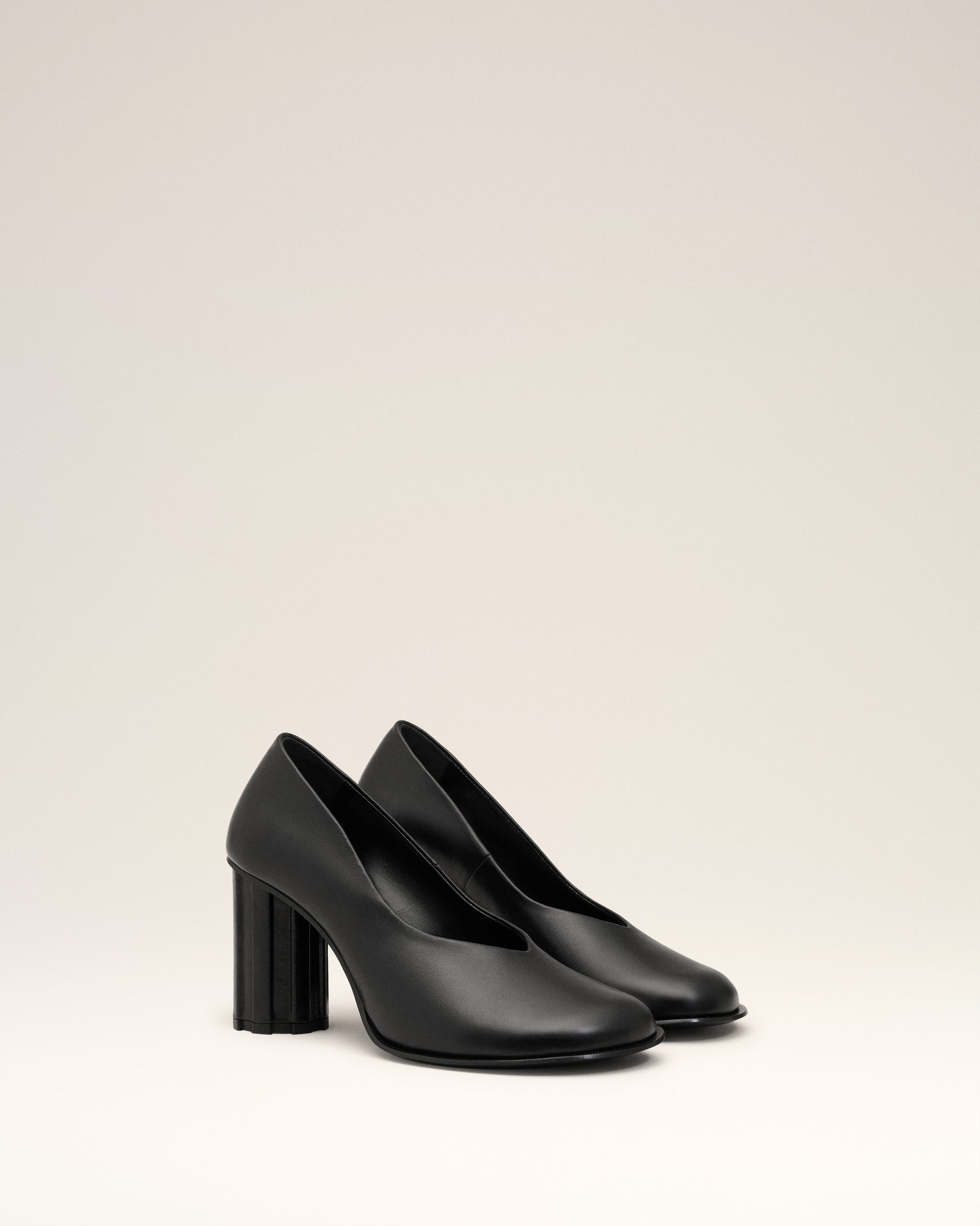 Anatomical toe ankle boots in shiny textured leather. Cow Leather Tonal zip Leather sole Shiny smooth leather lining Signature piano heel "ami alexandre mattiussi" label on the insole Ami de Coeur logo on the outsole Leather covered heel Total heel height 65mm Made in Portugal (with love) REF: FSV708.AL0095.001