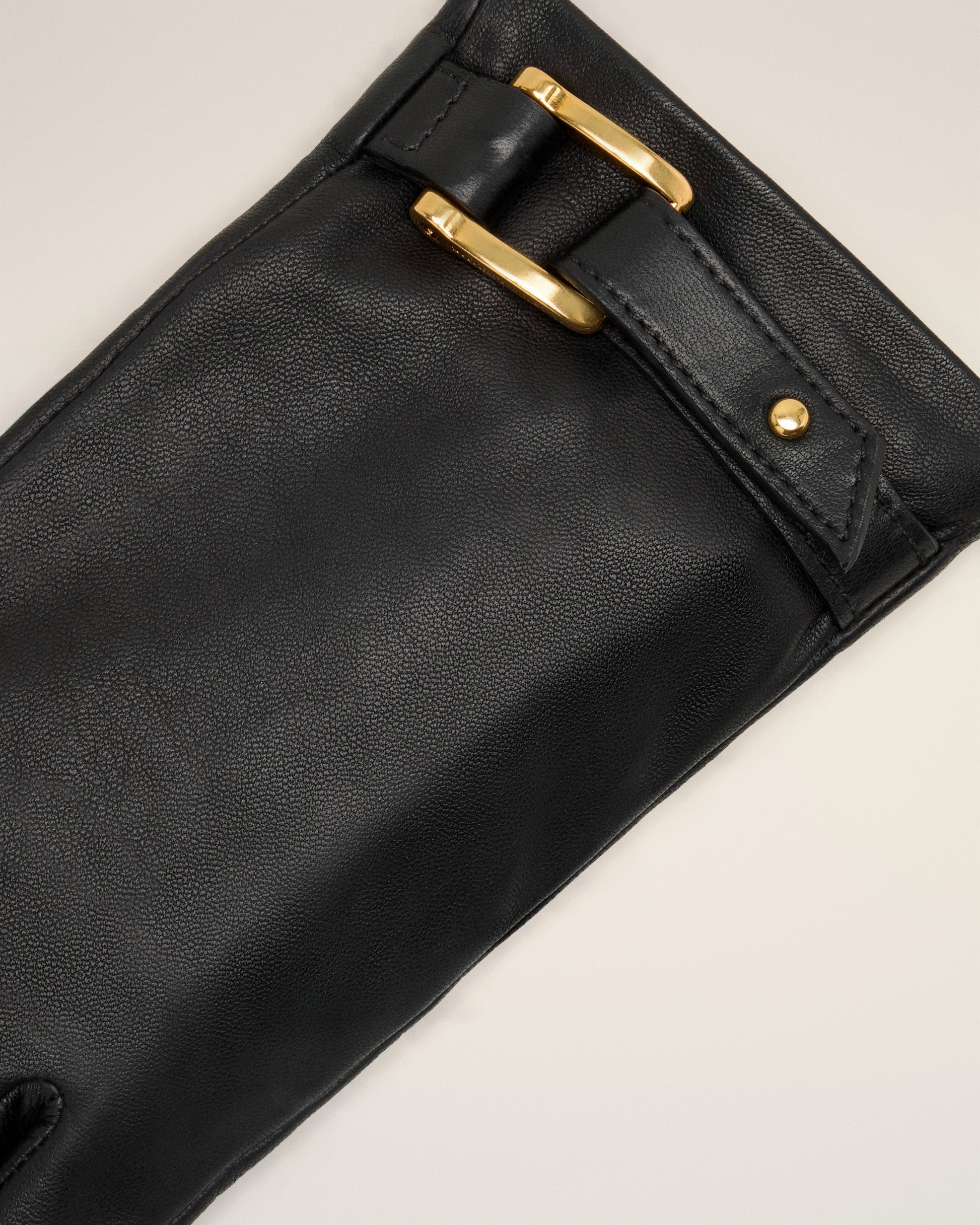 Black Leather Strap Detail Gloves