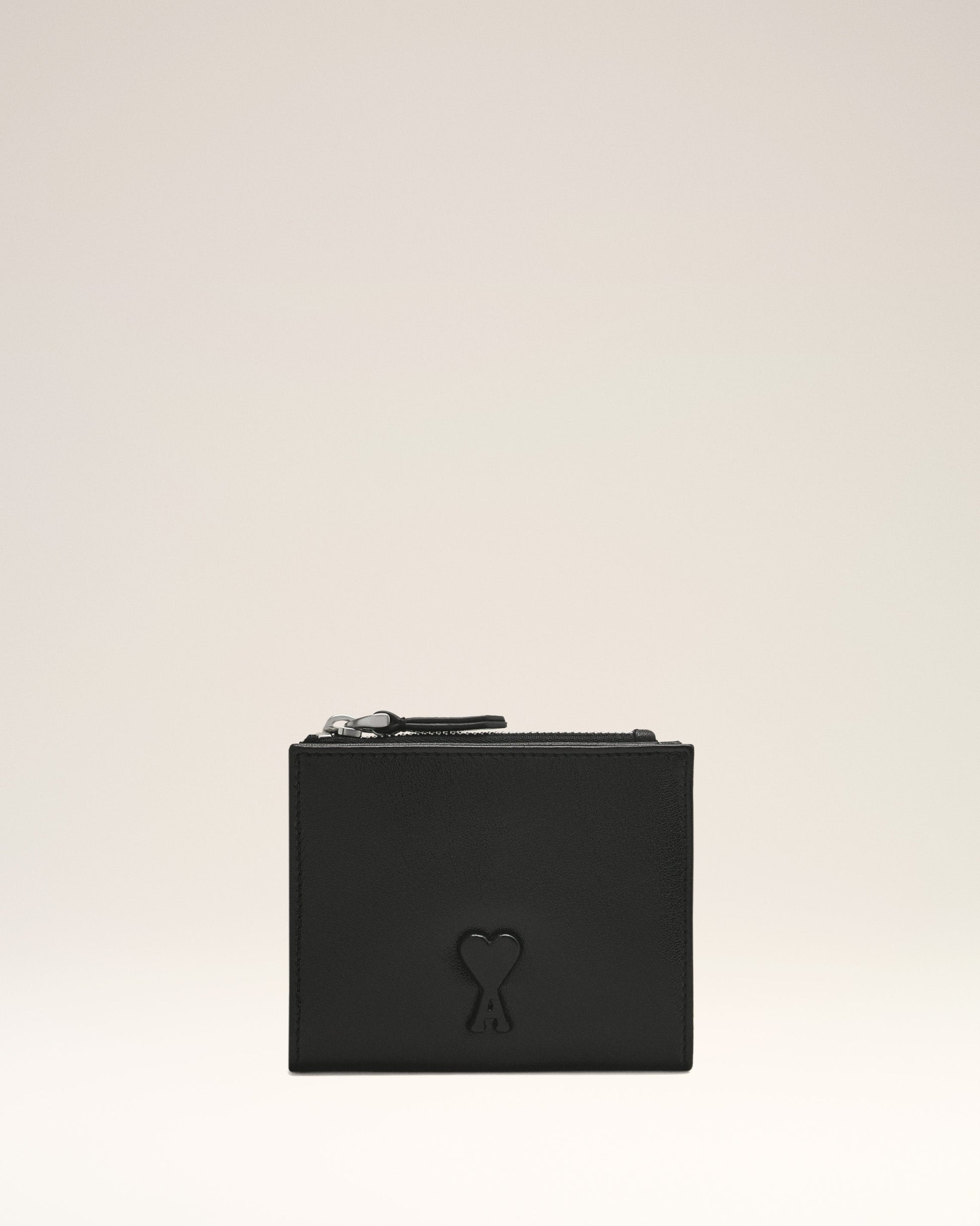 Voulez-Vous folded wallet in smooth leather. Unisex product Cow leather Snap button fastening Metal hardware in vibrated silver color Four card compartments and one note compartment One zipped coin pocket Herringbone cotton canvas lining Tonal Ami de Coeur stud Size: 10.5 x 8.5 cm Made in Morocco (with love) REF: USL201.AL0052.001